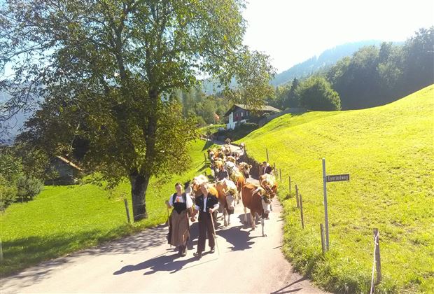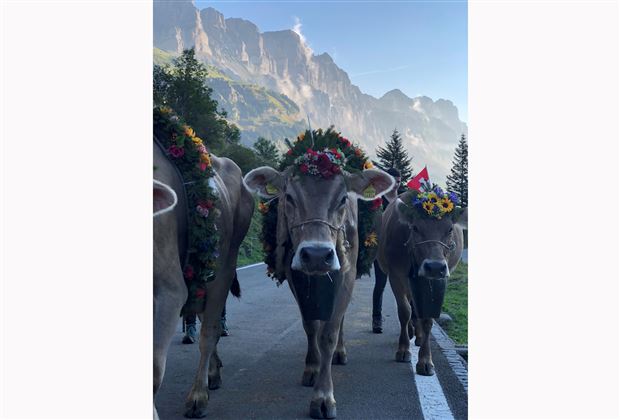 Eine Züglete hat etwas Magisches. Der Klang des Geläuts, der Anblick der strahlenden Leute, aber auch die Freude der Tiere. Für unseren Bildwettbewerb haben wir den schönsten Alpabzug gesucht. Fündig wurden wir trotz zahlreicher Einsendungen in Adelboden BE bei Marlis Germann. Ihre Züglete wurde von den beiden Kindern Sandro und Ursina angeführt, gefolgt von den Ziegen und Kühen. Wir bedanken uns für alle tollen Leserfotos.