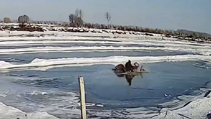 Das hätte bös in Auge gehen können. Ein Mann hatte in China einen Teich vom Schnee befreit. Das Eis war aber nicht so stabil und gab nach. Der Traktor mitsamt Fahrer versank im eiskalten Wasser.