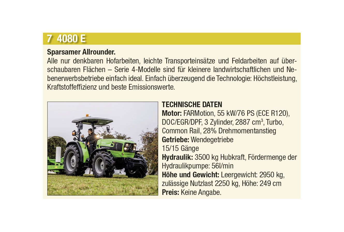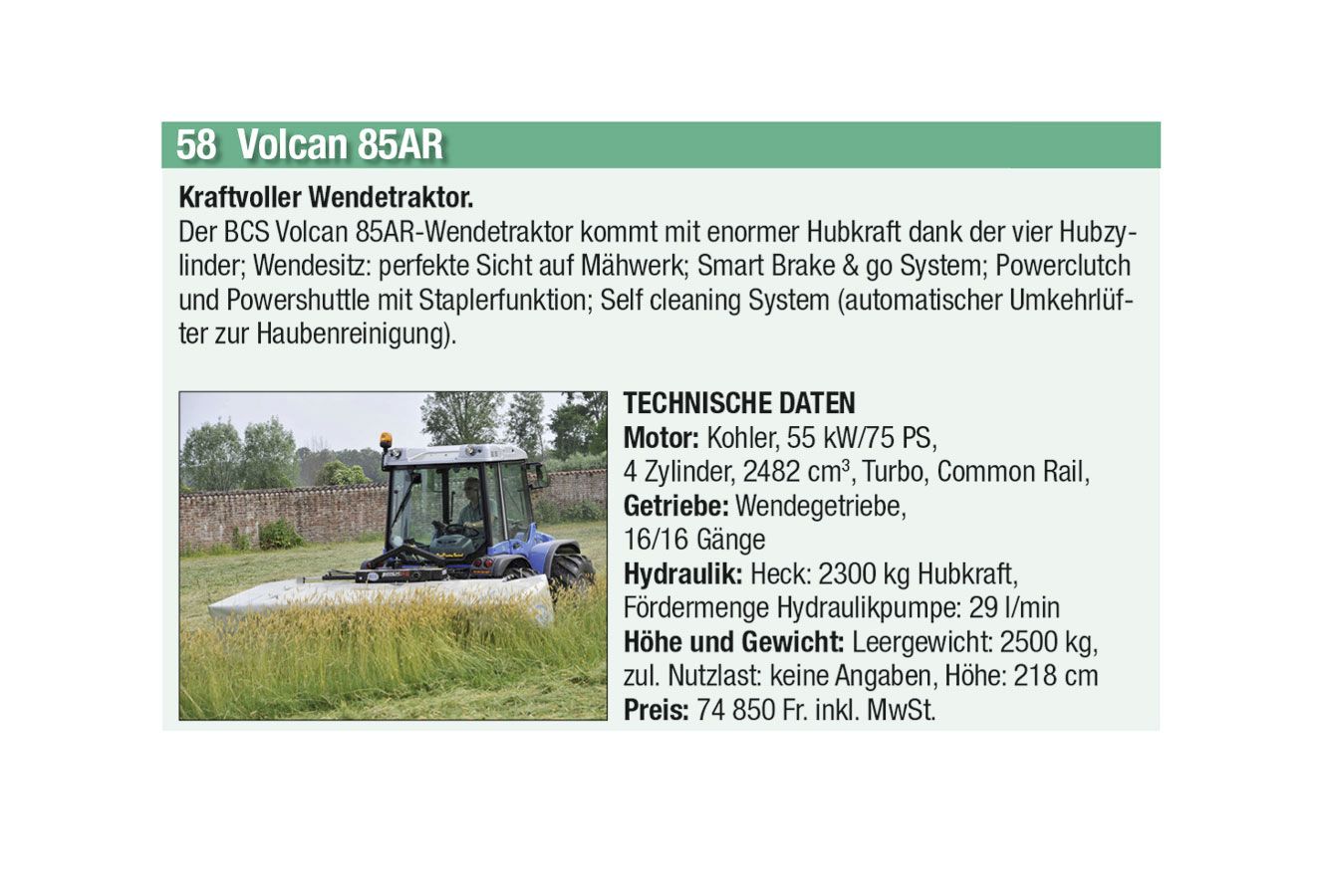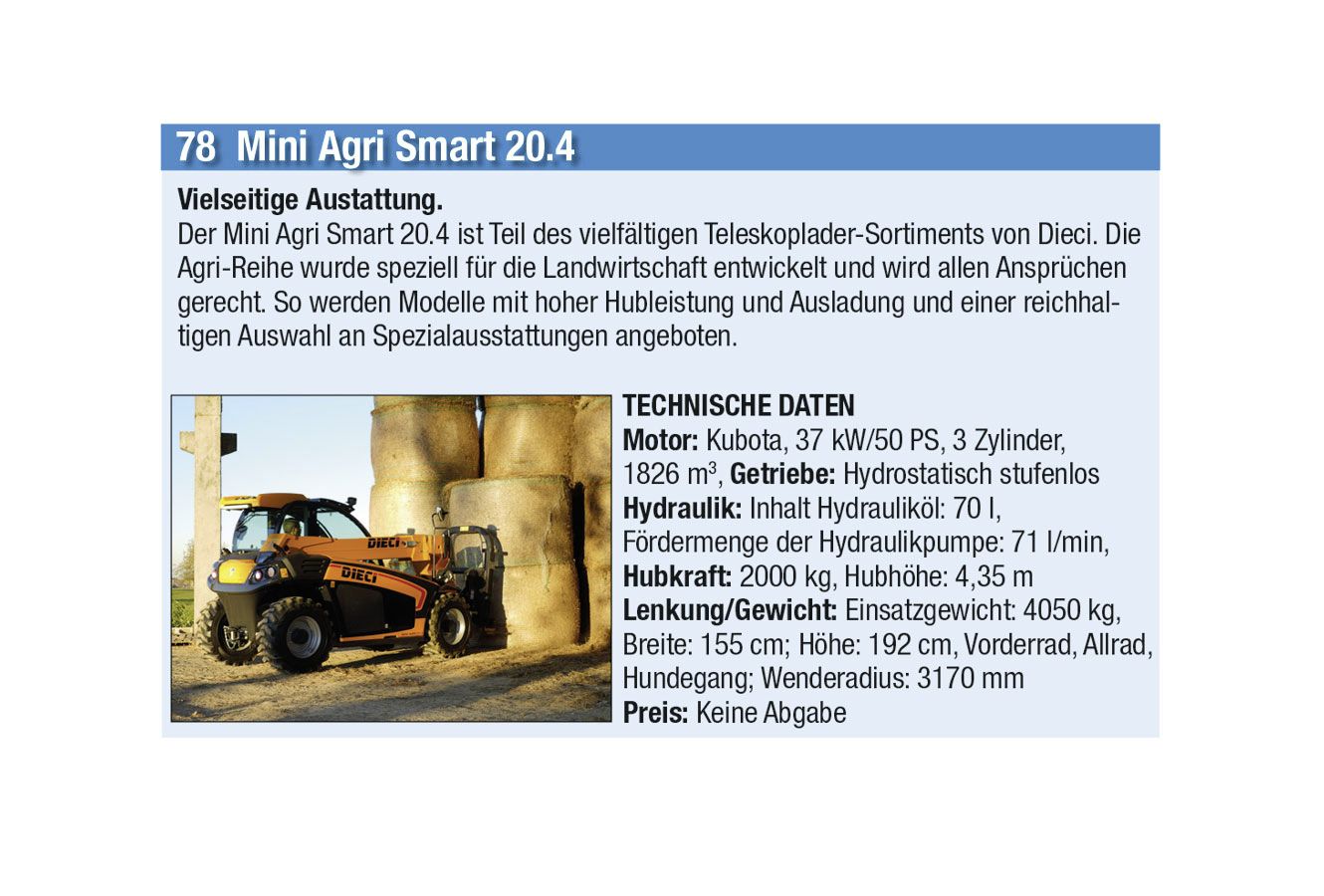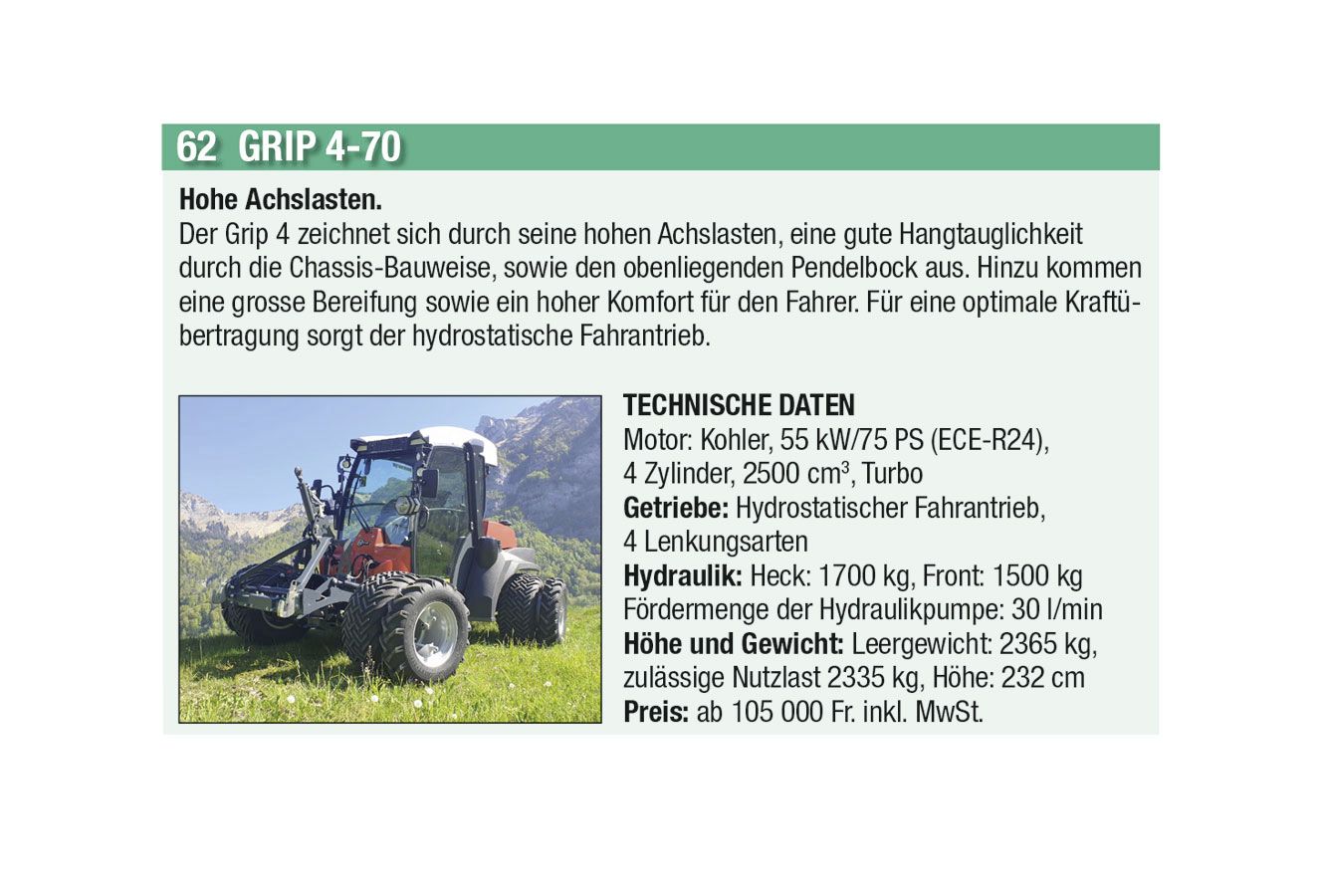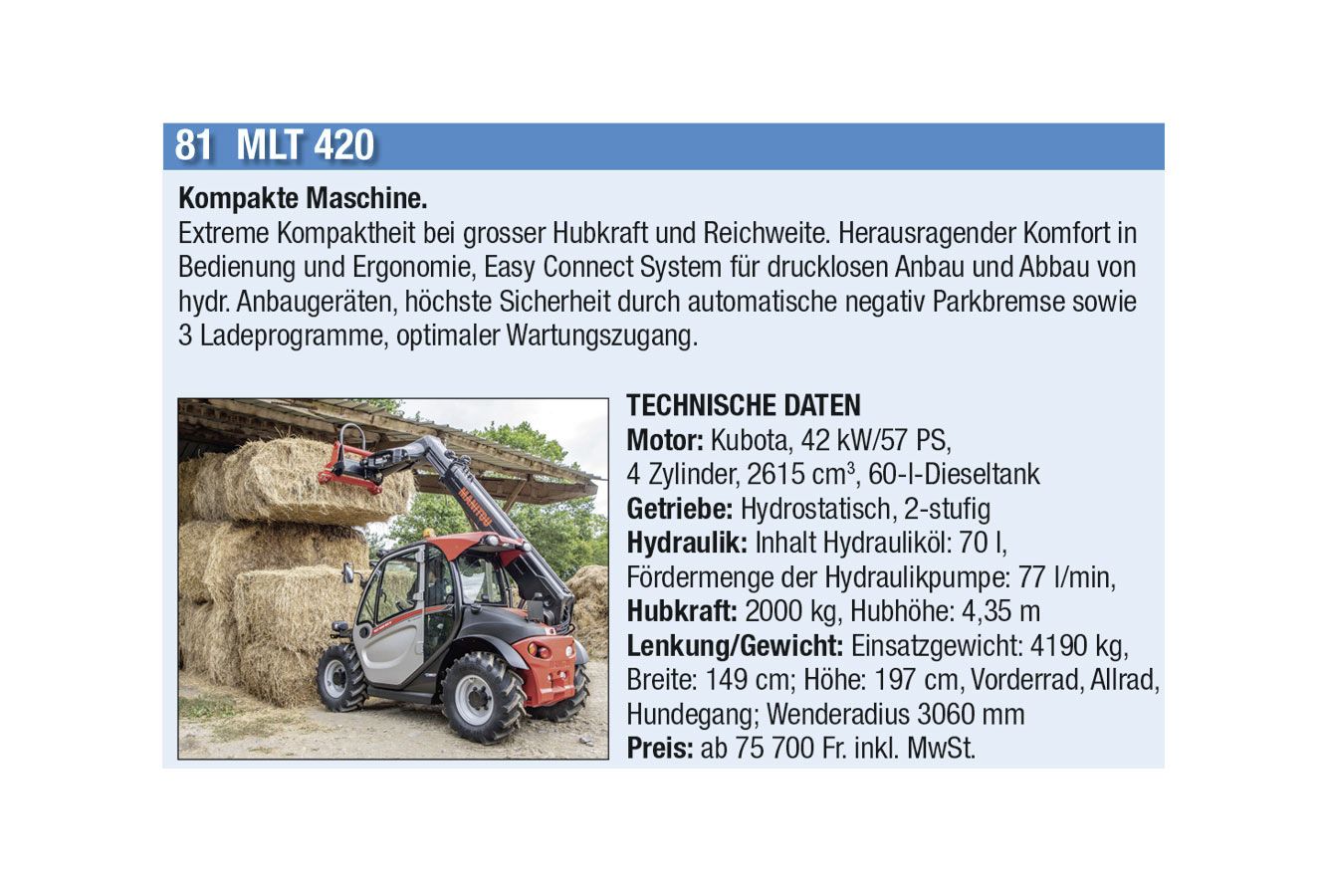 Die automatische Kommunikation und Abstimmung zwischen Traktor und Anbaugeräten sowie beim Überladen von Erntemaschinen auf Transportfahrzeuge wird immer wichtiger. Heute hat aber auch jeder Anbieter einen Allrounder mit einfacher Ausstattung im Programm. Stark zugenommen hat auch das Angebot an Hofladern jeder Grösse, oft mit batterie-elektrischen Antrieben. Auch der erste elektrisch angetriebene Traktor hat es in diese Ausgabe geschafft.