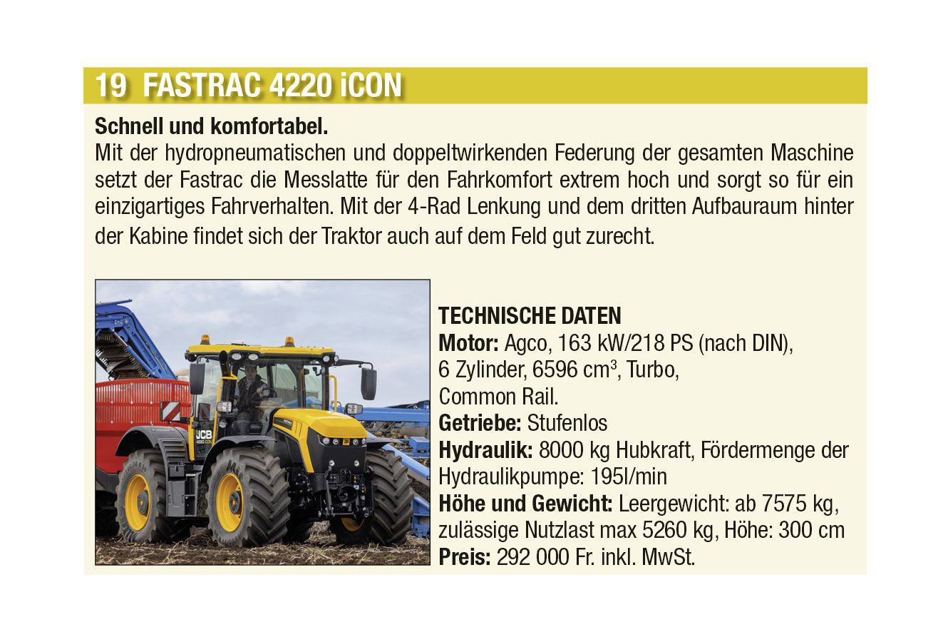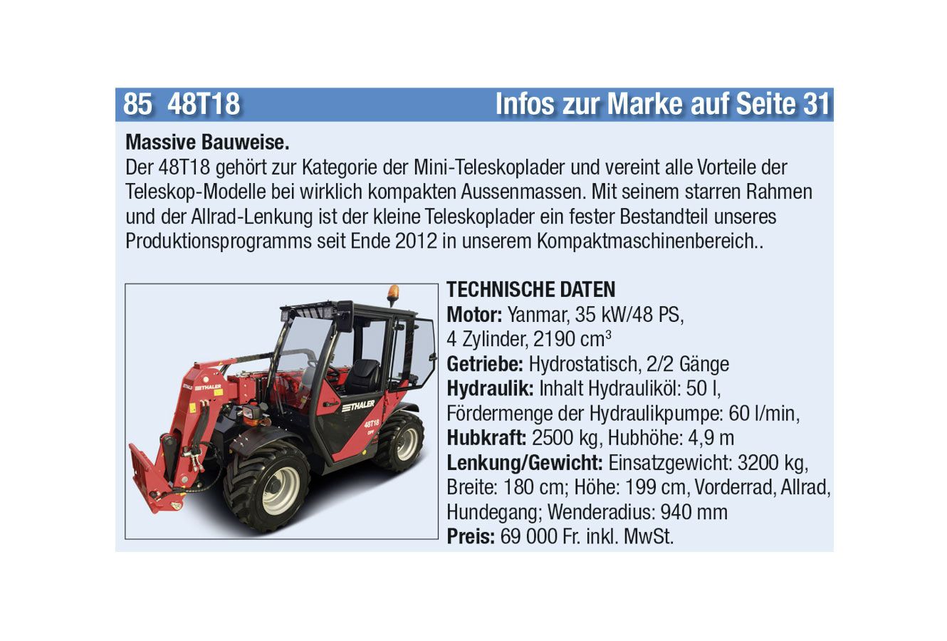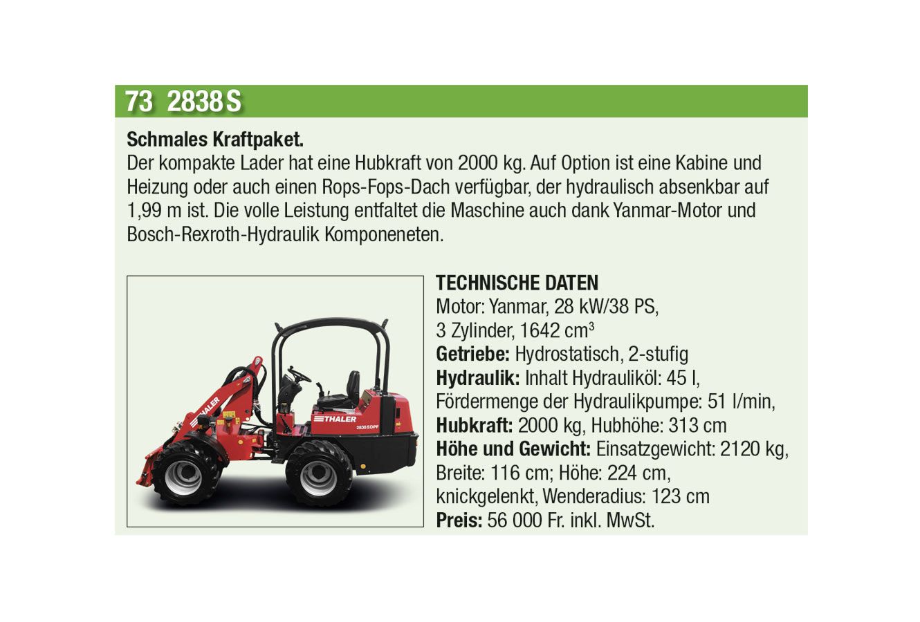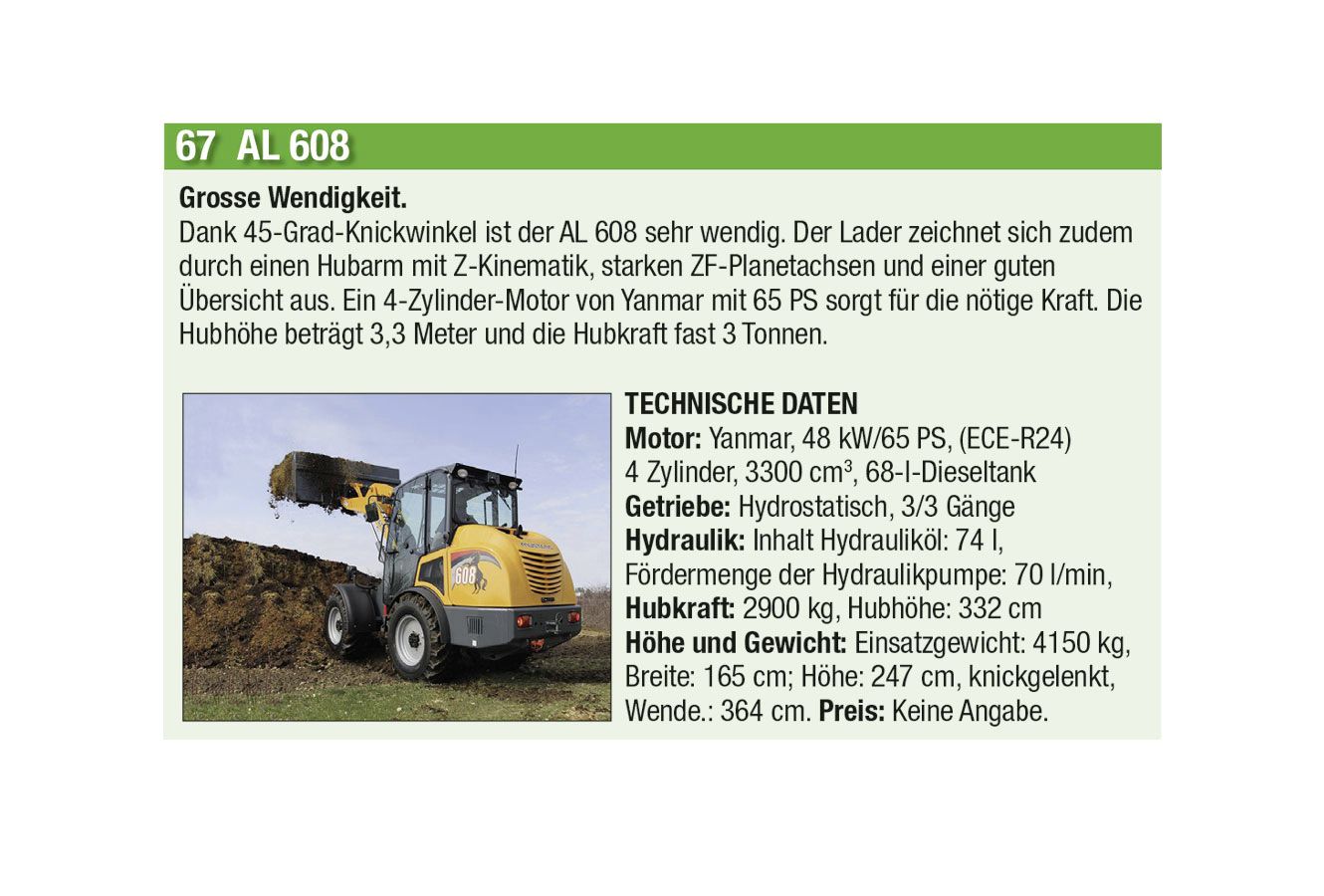Die automatische Kommunikation und Abstimmung zwischen Traktor und Anbaugeräten sowie beim Überladen von Erntemaschinen auf Transportfahrzeuge wird immer wichtiger. Heute hat aber auch jeder Anbieter einen Allrounder mit einfacher Ausstattung im Programm. Stark zugenommen hat auch das Angebot an Hofladern jeder Grösse, oft mit batterie-elektrischen Antrieben. Auch der erste elektrisch angetriebene Traktor hat es in diese Ausgabe geschafft.