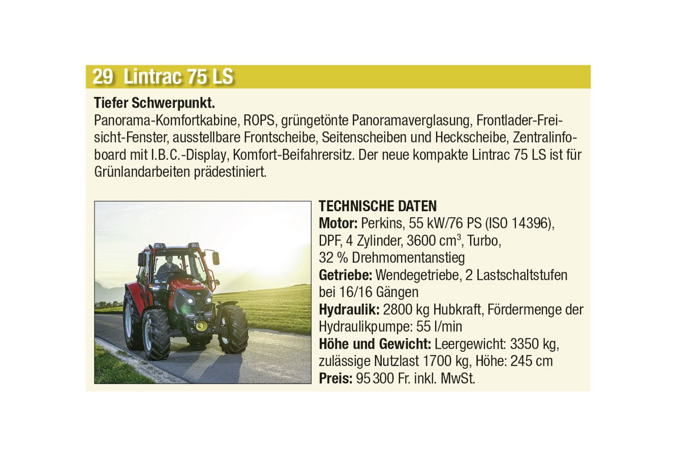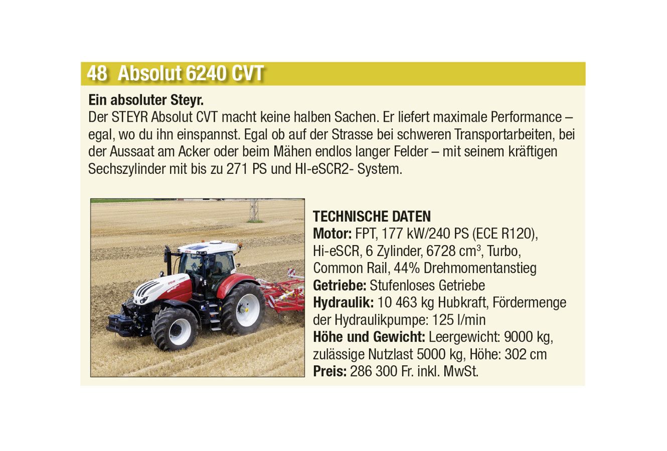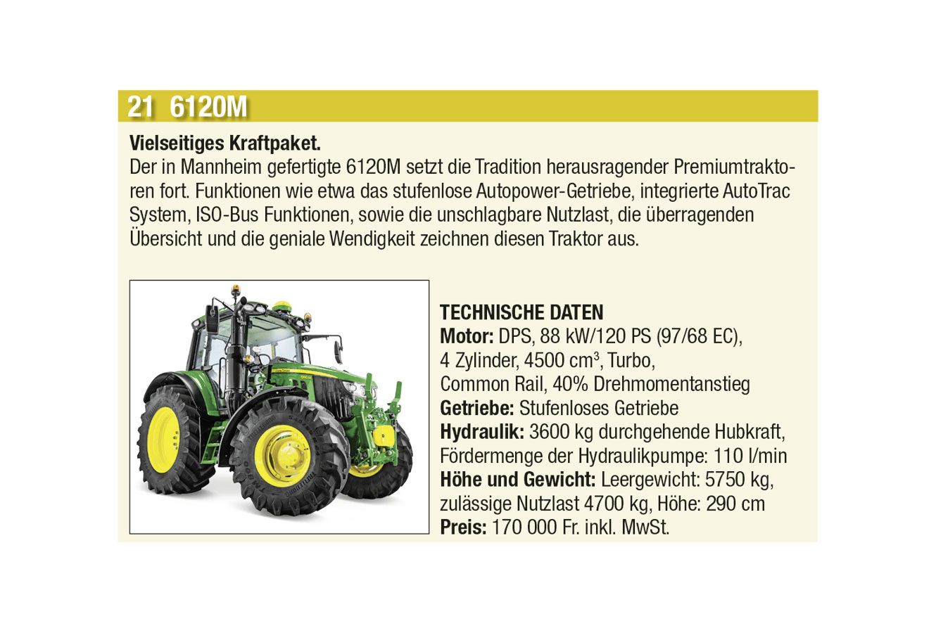 Einen Vorgeschmack auf diese Hightech-Landtechnik präsentieren wir Euch bei Voting für den «Traktor des Jahres». Insgesamt stehen 87 landwirtschaftliche Fahrzeuge, unterteilt in die vier Kategorien «Traktoren», «Bergmechanisierung», «Hoflader» sowie «Teleskoplader».