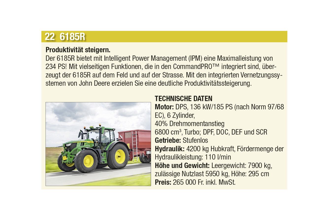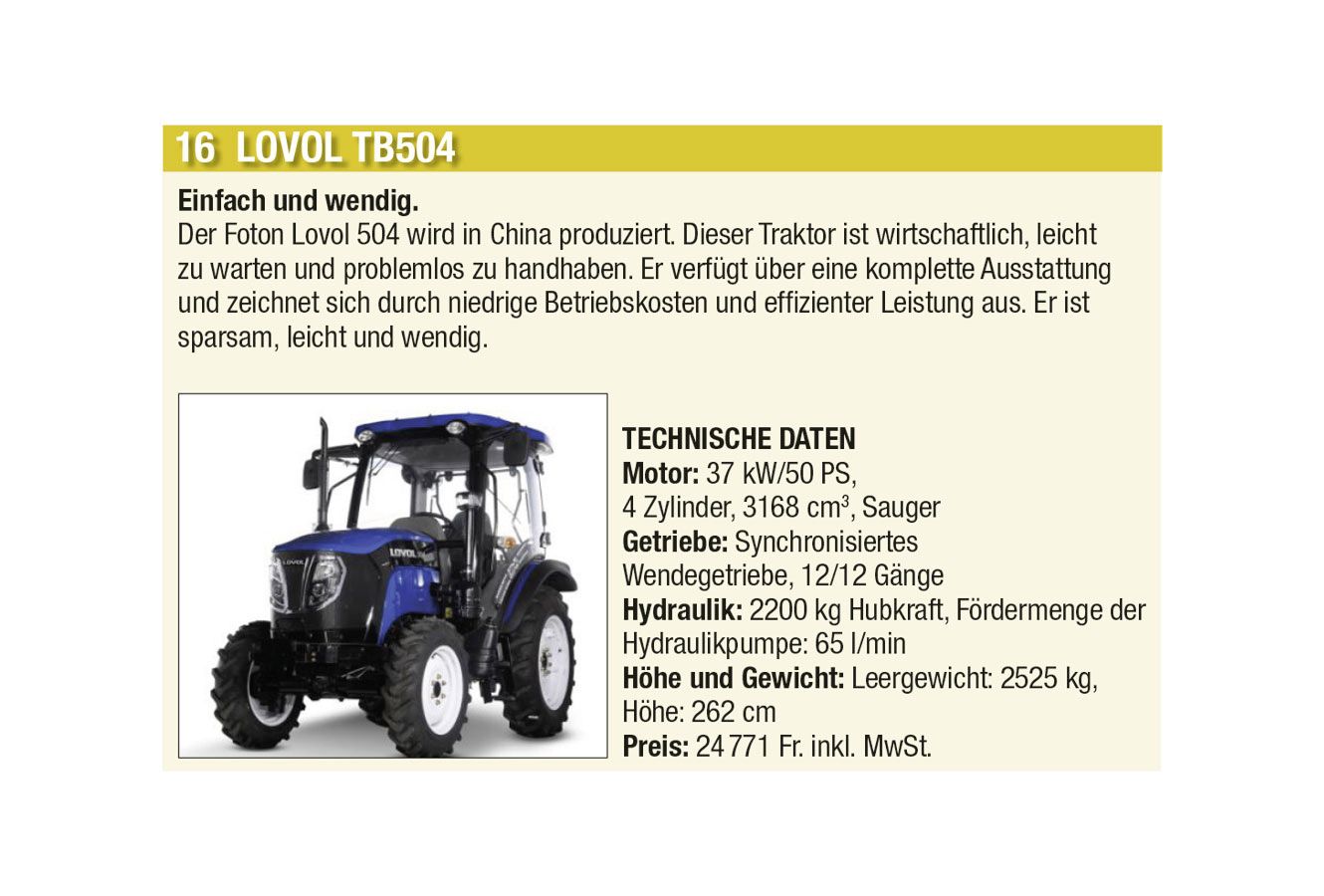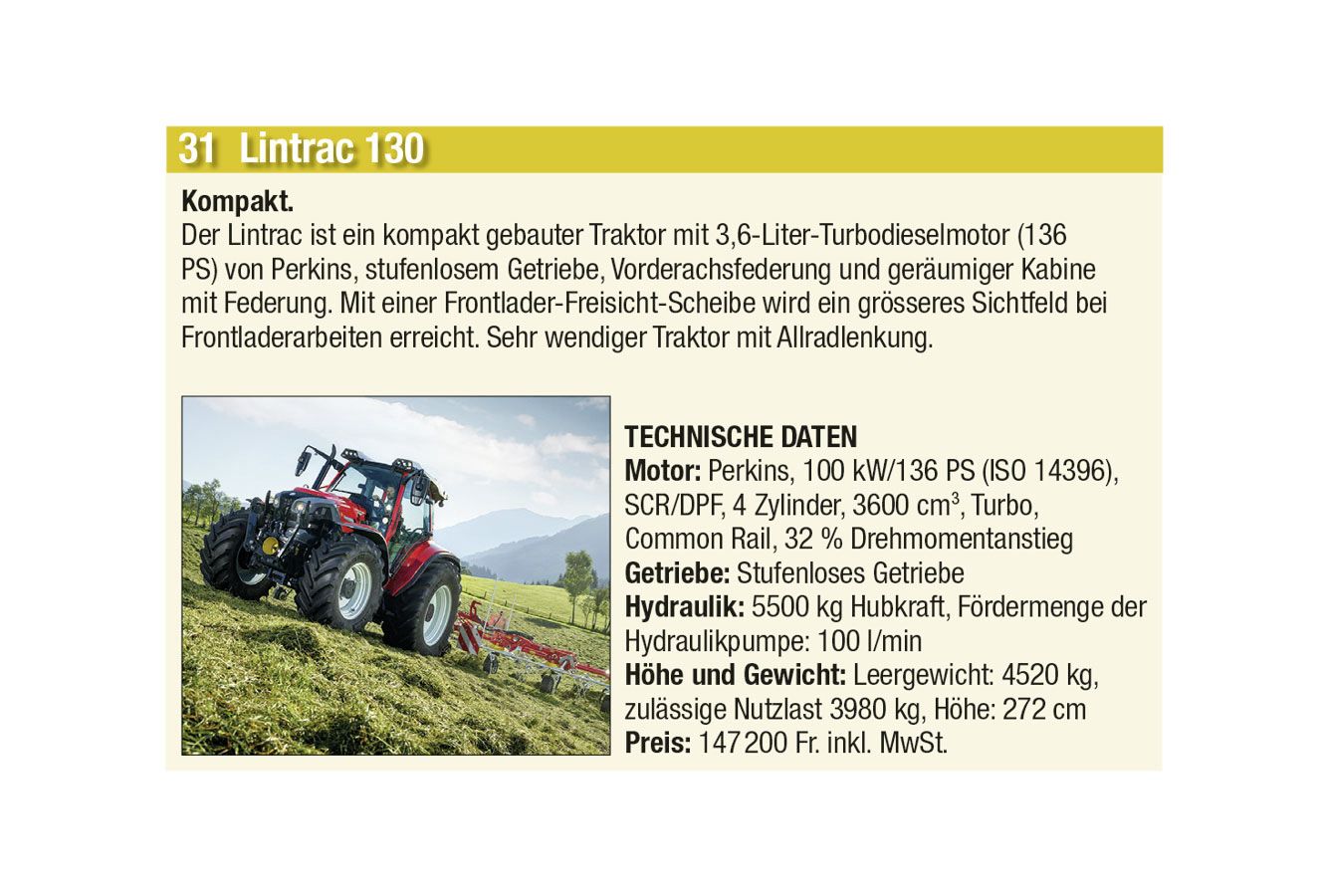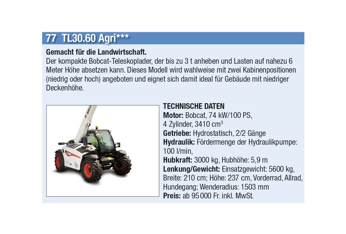 Einen Vorgeschmack auf diese Hightech-Landtechnik präsentieren wir Euch bei Voting für den «Traktor des Jahres». Insgesamt stehen 87 landwirtschaftliche Fahrzeuge, unterteilt in die vier Kategorien «Traktoren», «Bergmechanisierung», «Hoflader» sowie «Teleskoplader».