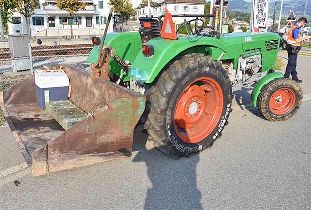 Gemäss Polizeiangaben war ein Traktorfahrer gegen 16.15 Uhr vom Ortszentrum in Richtung Bahnübergang unterwegs.