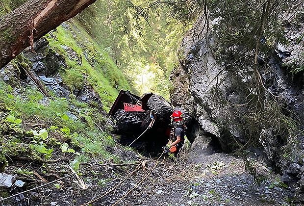 Folglich stürzte dieses samt Lenker etwa 60 Meter einen steilen Abhang in ein Tobel hinunter. Im felsigen Gelände wurde der Traktor verkeilt und schliesslich so gestoppt. Der verletzte Fahrzeuglenker konnte sein Gefährt selbständig verlassen und die Rettungskräfte alarmieren.