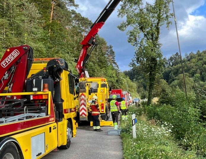 Der gravierende Unfall ereignete sich auf der Challstrasse. Ein Mann war mit einem Traktor in Richtung Metzerlen unterwegs. Aus noch unbekannten Gründen kam das Fahrzeug von der Strasse ab.