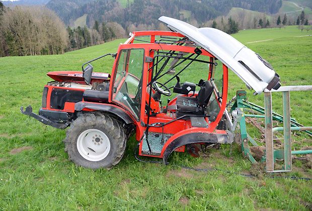 Beim Kreuzen kam es zu einer seitlichen Streifkollision mit dem Güllenfass. Dabei kam der Spezialtraktor des 79-Jährigen von der Strasse ab und stürzte rund 150 Meter einen Abhang hinunter. Der Lenker erlitt mittelschwere Verletzungen und musste mit einem Rettungshelikopter der Rega ins Spital geflogen werden. Der Gefährt wurde stark beschädigt.