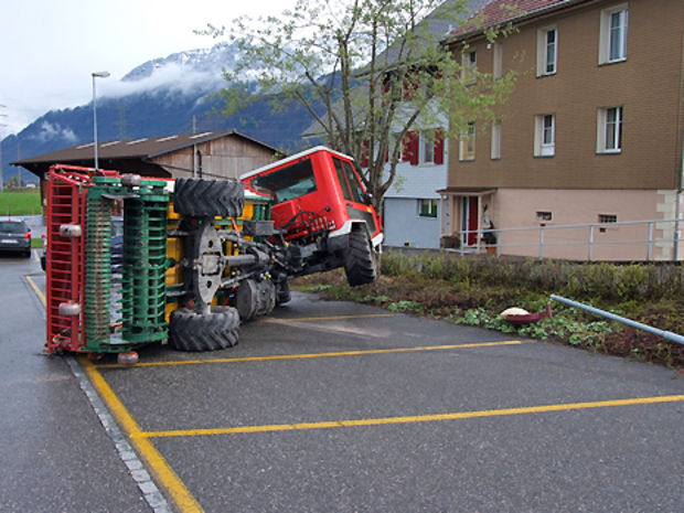 Am vergangenen Mittwoch verursachte ein Traktorfahrer in Benken SG einen Unfall. Der Aufbau hinter der Führerkabine kippte zu Seite. Der Fahrer blieb unverletzt.
