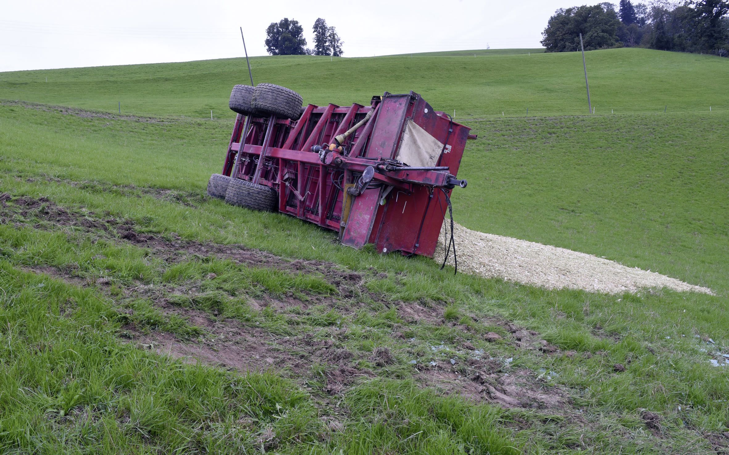 Gemäss Polizeiangaben war der Mann kurz nach 18.30 Uhr mit einem Traktor und angekoppeltem Anhänger auf einem Feldweg unterwegs. In einem steilen Bereich kam die Fahrzeugkombination ins Rutschen.