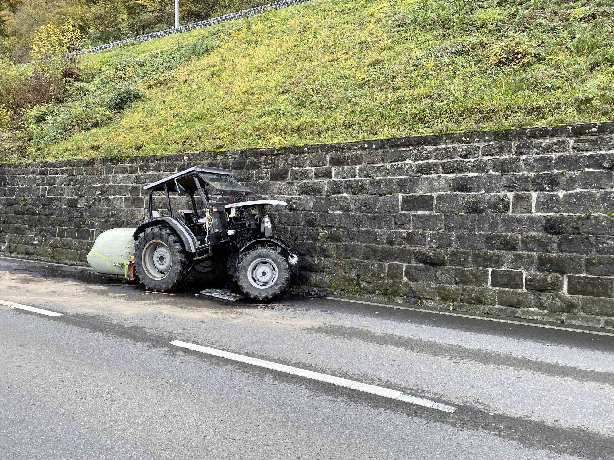 Am Dienstagmorgen hatte ein Frau Glück im Unglück. Sie prallte mit einem Traktor frontal in eine Stützmauer. Die 30-Jährige blieb unverletzt.