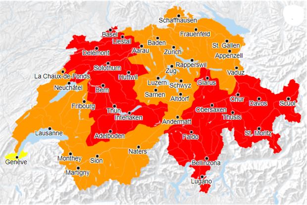 In der von der Waldbrandgefahr besonders betroffenen Nordwestschweiz hatte der Kanton Jura bereits zuvor ein absolutes Feuerverbot in Wäldern beschlossen. Am prekärsten ist die Situation aber weiterhin in der Süd- und Südostschweiz, wie die Waldbrand-Gefahrenkarte des Bundesamts für Umwelt (Bafu) zeigt.
