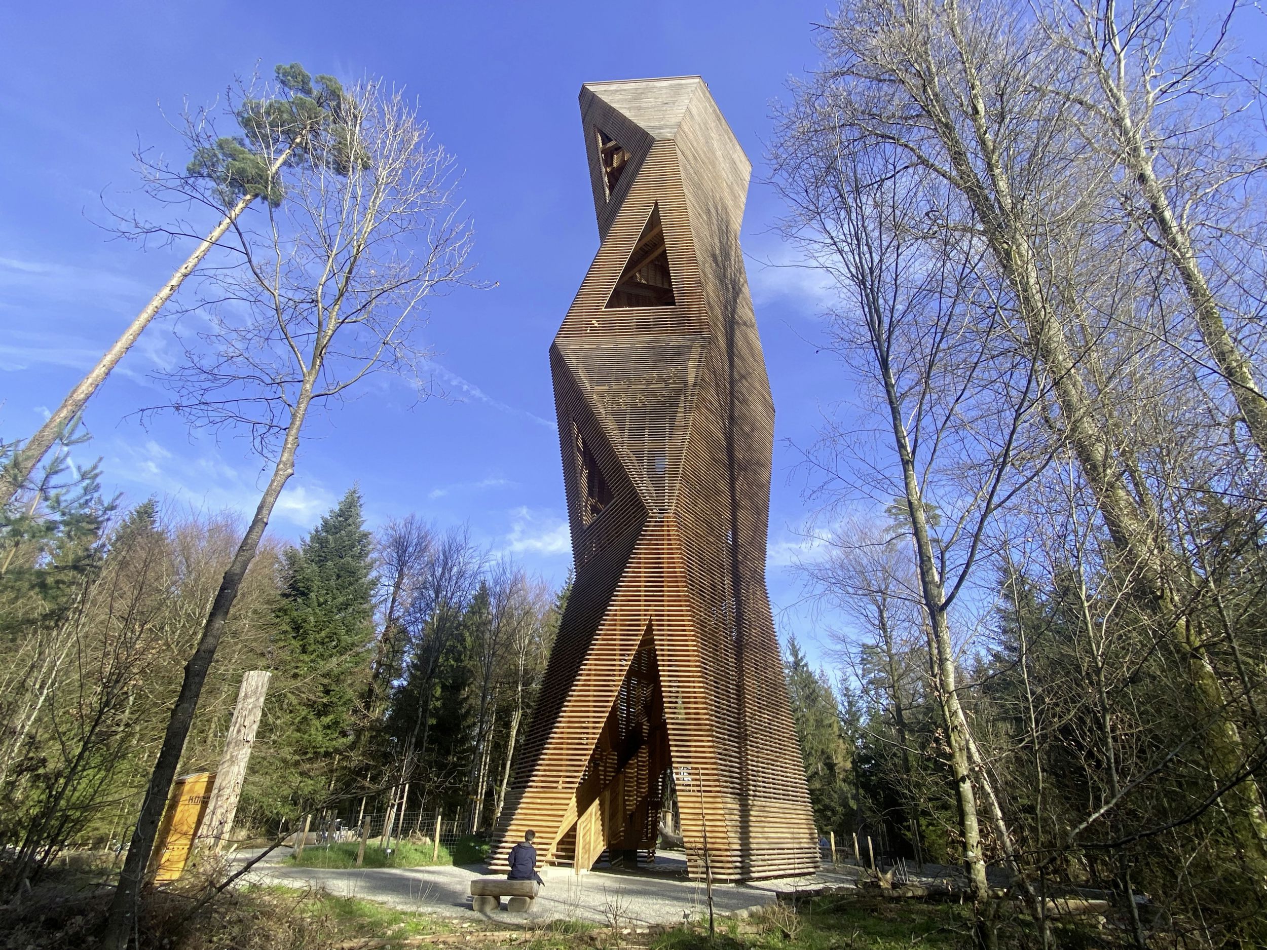 «Der Hardwaldturm zeigt exemplarisch die vielfältigen Anwendungsmöglichkeiten von lokalem Schweizer Holz», schreibt Holzindustrie in einer Mitteilung. Für den Turm in der Gemeinde Dietlikon ZH wurden 380m3 Holz aus dem umliegenden Wald verbaut.