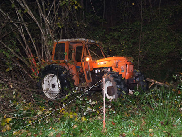 Am vergangenen Montagabend (31.10.2011) um 20.15 Uhr wollte ein Mann einen Traktor in Eichberg nahe Altstätten SG auf einer Naturstrasse wenden, teilt die Kantonspolizei St. Gallen in einem Communiqué mit. Dabei kippte das Fahrzeug ein steiles Wiesenbord hinunter und überschlug sich zweimal. Der Traktor kam am Waldrand zum Stillstand. Der 61-jährige Lenker blieb unverletzt.