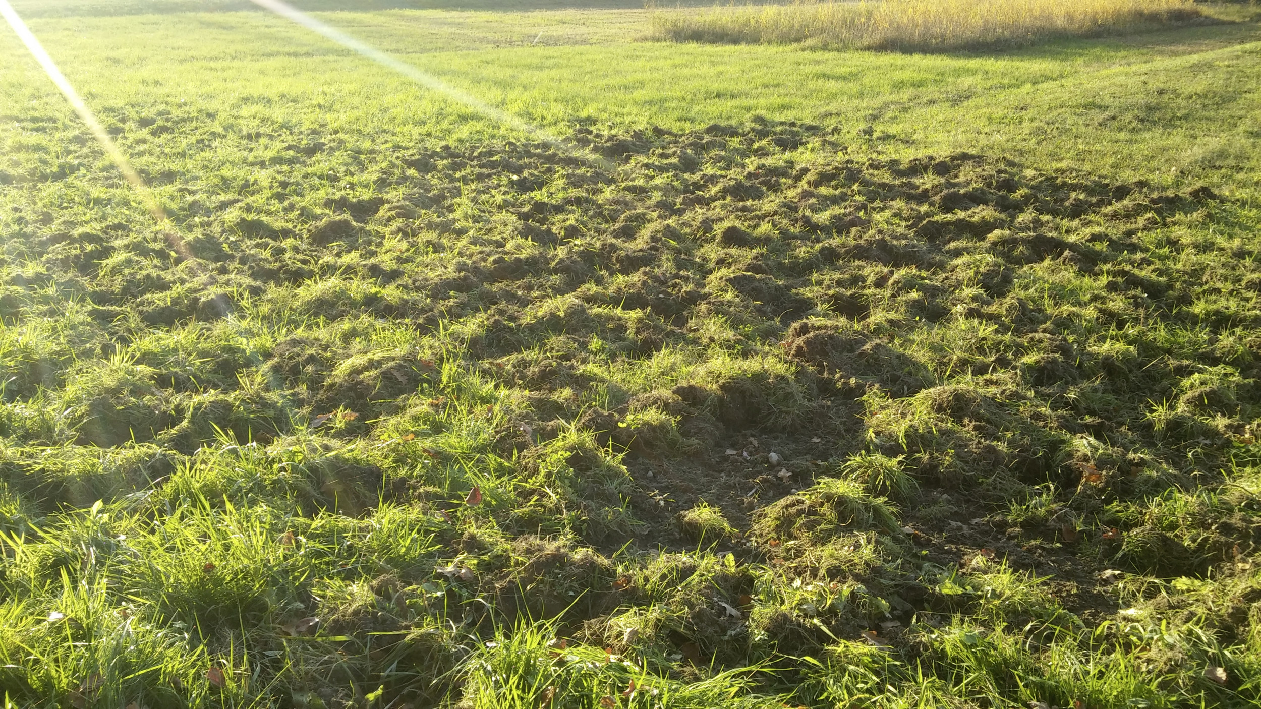 Wildschweine durchwühlen oft «nur» die obersten fünf Zentimeter der Bodenschicht, das dafür über ein ganzes Feld.