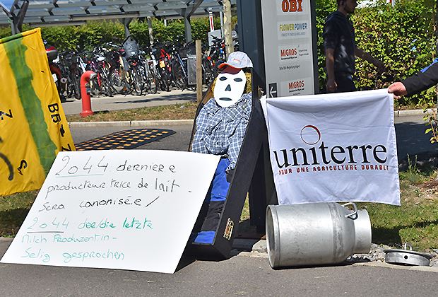 Am Dienstag protestierte die Bauerngewerkschaft Uniterre vor dem Hauptsitz der Migros Aare in Schönbühl BE gegen die Preissenkung der Migros. Sie sende als grosser Player im Markt ein ganz falsches Signal aus, kritisierte Rudi Berli von Uniterre. Die Produktion eines Liters Milch koste die Bauern rund einen Franken. Der Richtpreis liege bei rund 68 Rappen.
