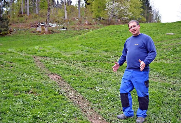 Weil der Boden der Wiese noch sehr feucht ist, wirken sich die Reifenspuren umso gravierender aus. «Da wächst kein Gras, sondern Unkraut nach. Das bedeutet, dass wir mehr Arbeit investieren müssen, damit die Wiese wieder gesund wird», macht er deutlich. Und für den Bauern doppelt bitter: Diese Wiese gehört zu den Ergiebigsten auf dem Sackberg. «Die Milchmenge steigt, wenn meine Tiere hier weiden können», sagt der Landwirt.