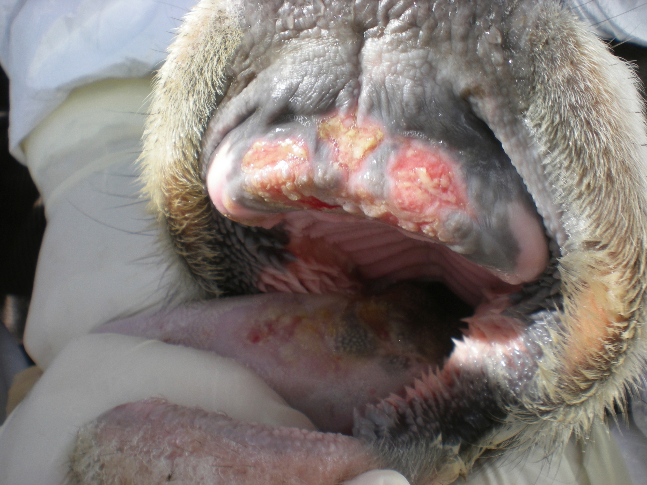 Bei Schafen und Ziegen ist der Krankheitsverlauf oft mild und die Bläschenbildung ist weniger stark ausgeprägt.