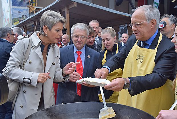 Die Regel, dass der jeweilige Bundespräsident die Olma und den Autosalon eröffne sowie am Cupfinal anwesend ist, kippte der Bundesrat Ende 2014 aus dem Pflichtenheft für das Präsidium. Schneider-Ammann genoss den Auftritt an der Ostschweizer Landwirtschaftsmesse sichtlich. Es habe ihn ausserordentlich gefreut, dass ihn die Bundespräsidentin nach St. Gallen delegiert habe, stellte er klar.