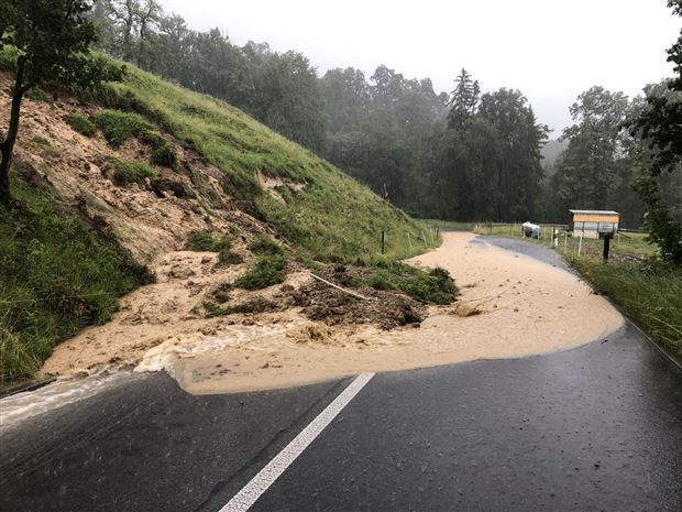 Auch der Flugplatz in Emmen stand unter Wasser. Strassen mussten nach Murgängen und Rutschungen gesperrt werden. Verletzt wurde niemand.