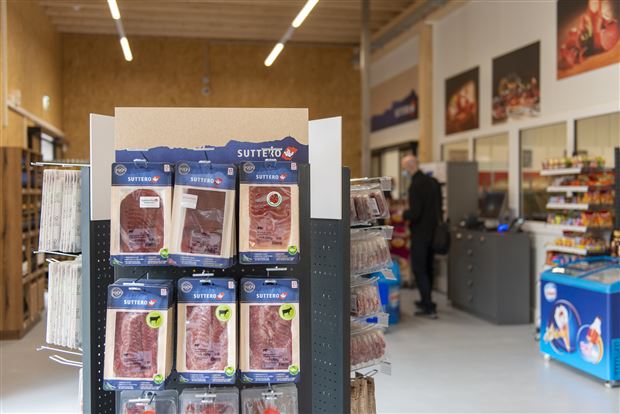 Nach einer Bauzeit von nur fünf Monaten sind moderne, kundenfreundliche Räumlichkeiten entstanden, schreibt die Ernst Sutter AG. So biete der neue Fabrikladen eine helle und grosszügige Verkaufsfläche. Auf rund 250 Quadratmetern werde das komplette Suttero-Sortiment sowie eine Vielfalt an Fleisch und Fleischwaren direkt ab Produktion zu attraktiven Preisen den Kunden angeboten.