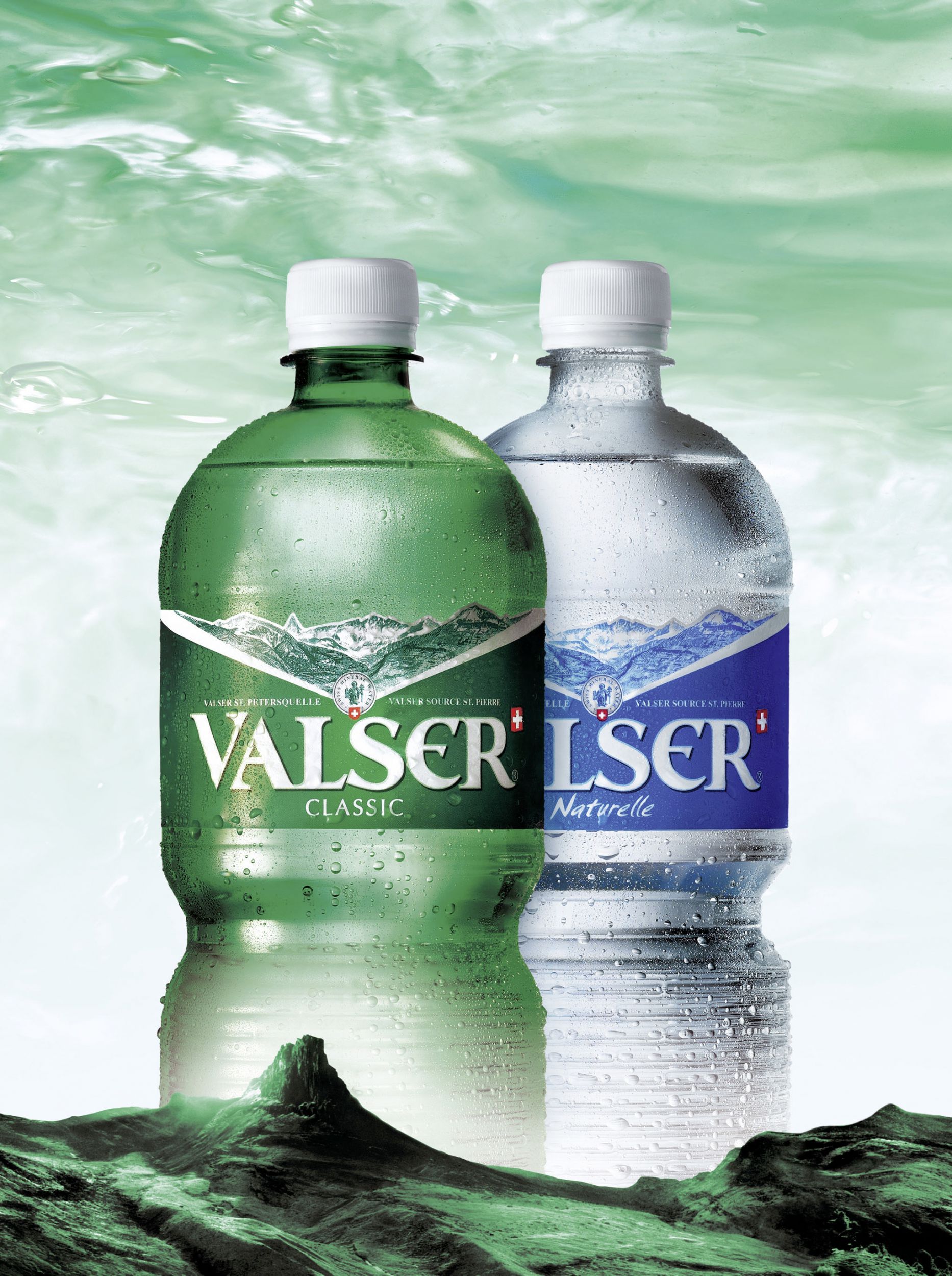 Der Getränkehersteller Valser verkauft in der Schweiz laut eigenen Angaben als erstes Unternehmen Mineralwasser in einer PET-Flasche ohne Etikett. Damit produziert das Unternehmen weniger Abfall und das Produkt kann einfacher recycelt werden.