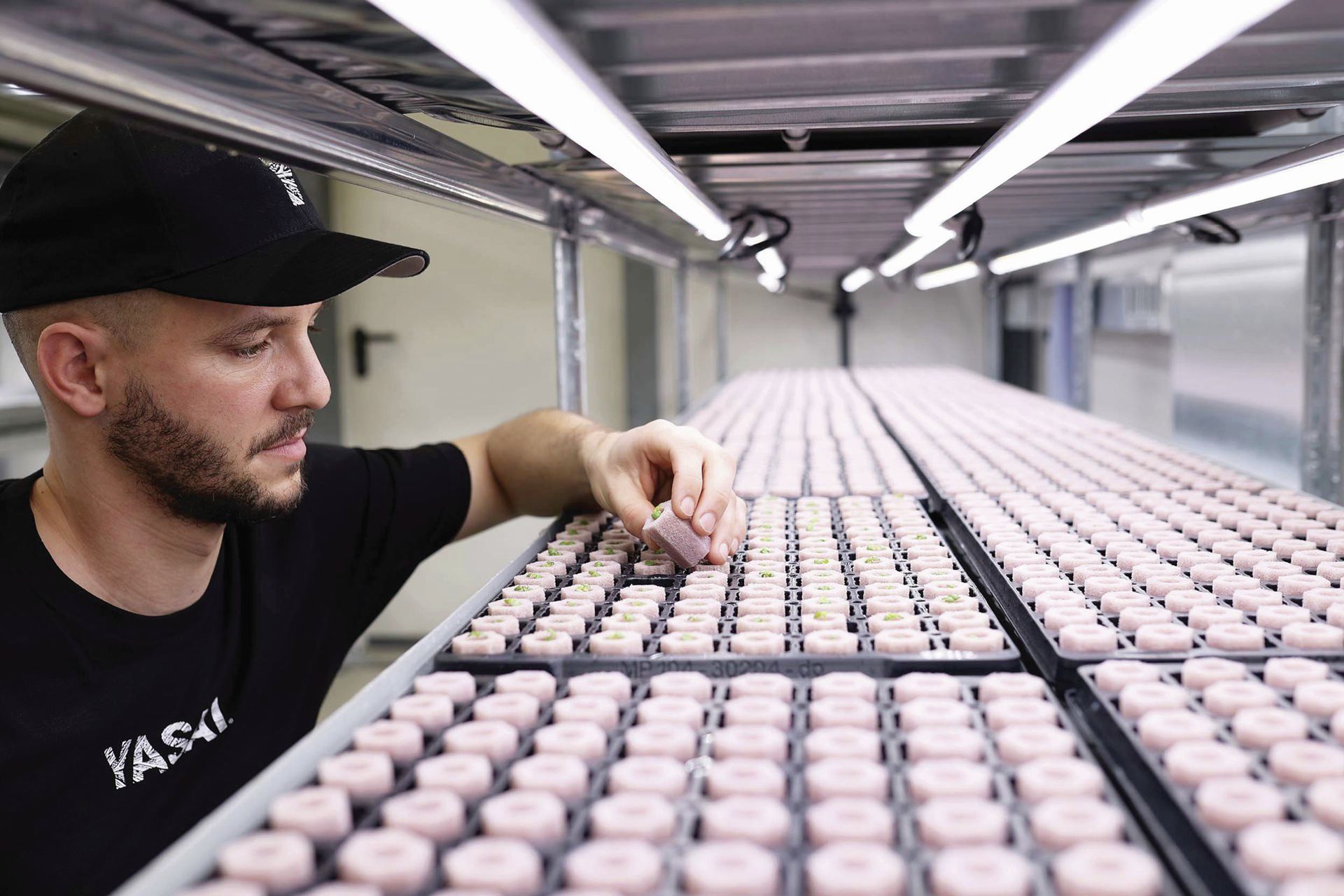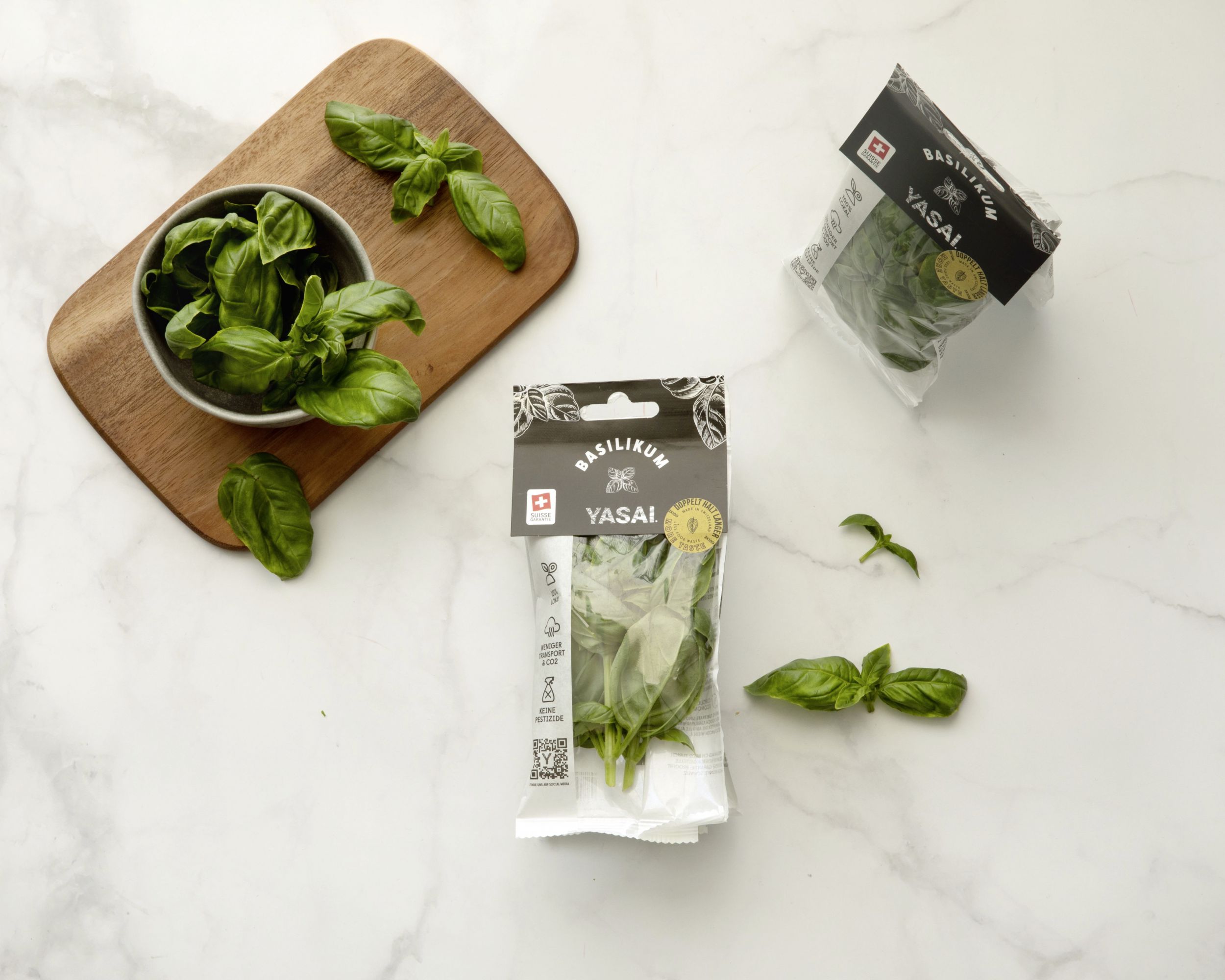 Die Produktion in der Pilotanlage wird nun schrittweise hochgefahren. Basilikum wird als erstes Erzeugnis auf den Markt gebracht. «Ab März fügen wir unserem Sortiment Minze und Koriander hinzu. Blattgemüse und Beeren sind in Planung», erklärt Yasai-Chef Mark Zahran. Die Anlage bietet aktuell auf 600 Quadratmetern Platz für rund 50’000 Pflanzen und ist weiter ausbaufähig. Für die Markteinführung gedeihen tausende Basilikumpflänzchen.