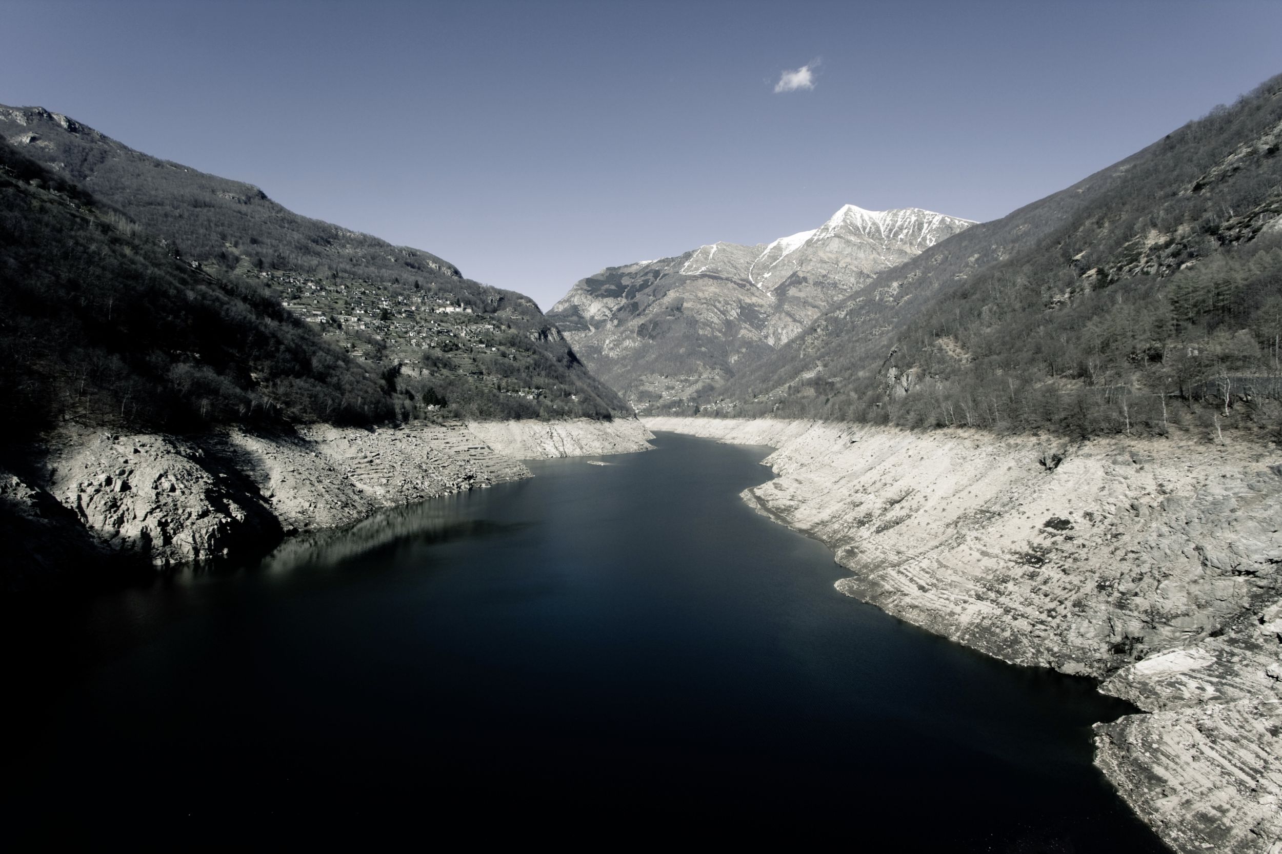 Zum ersten Mal seit seinem Bau vor 56 Jahren wird der Stausee im Verzascatal vollständig entleert. Während Techniker am Seegrund Sanierungsarbeiten durchführen, gibt der abgesenkte Wasserspiegel den Blick frei auf einstige Weingärten und eine verwunschene Steinbrücke.