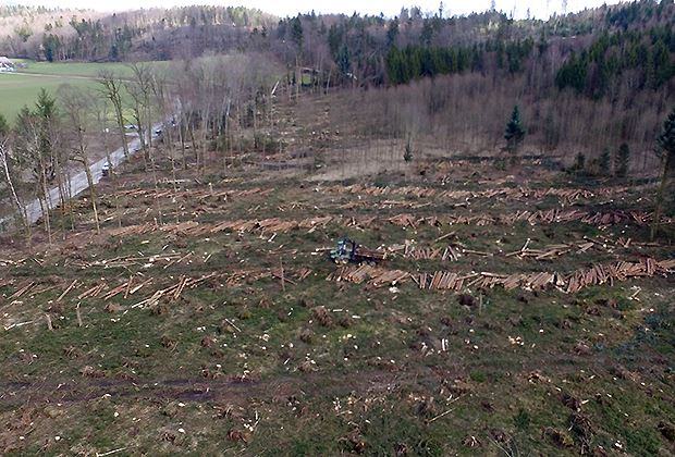 In der Schweiz fielen dem Sturm nicht weniger als 1.3 Millionen Kubikmeter Holz zum Opfer. Zum Vergleich: 2016 waren im Schweizer Wald knapp fünf Millionen Kubikmeter Holz geerntet worden. Nach »Lothar« waren 13 Millionen Kubikmeter Holz angefallen.