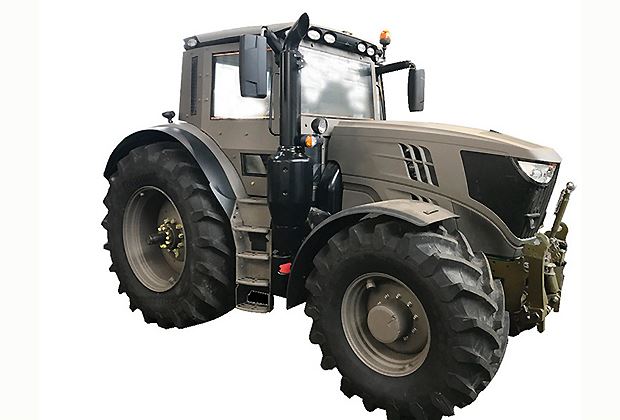 Gemäss Hersteller Rebo Landmaschinen aus Visbek-Rechterfeld hat der Schlepper beheizte Panzerglasscheiben und einen Unterbodenschutz. Der aus Panzerstahl gebaute Schutzaufbau der Kabine erfüllt die Nato-Norm. «Der Aufbau bietet gleichzeitig kaum Einschränkungen in Freisicht und Ergonomie», hält das Unternehmen fest.