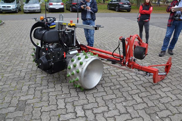 Die hydrostatische Grundeinheit mit Briggs & Stratton-Motor mit 23 PS bringt den 500 kg schweren Einachsgeräteträger auf maximal 12 km/h Arbeitsgeschwindigkeit mit dem 3-Meter-Doppelmessermähbalken. Gelenkt wird die Maschine manuell per Fernsteuerung oder per GPS, wobei die Maschine (noch) keine Augen hat, weshalb der Lenker die Maschine immer im Blick haben muss und per Totmannschalter auf der Fernbedienung sichern.