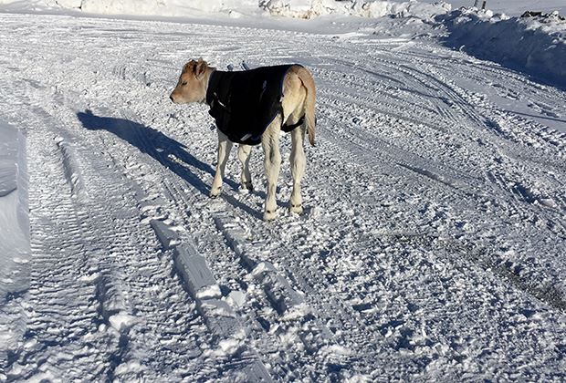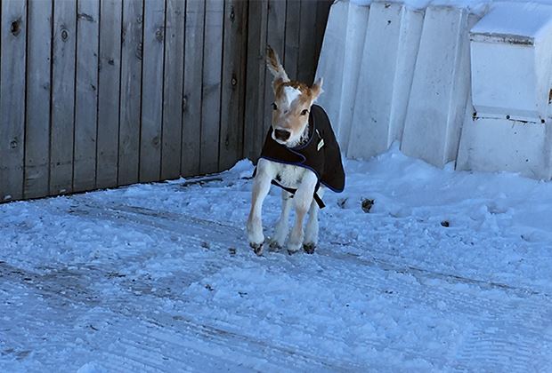 Pippa ist ein Winterkalb. Sie freut sich ob dem schönen Schnee.