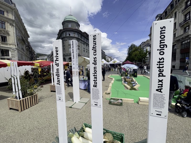 Am traditionellen Bauernmarkt in der Bieler Nidaugasse stiessen die Passantinnen und Passanten am Freitag und Samstag nach Auffahrt auf weisse Pfosten, einige Häppchen Landwirtschaft, Bäuerinnen und Bauern.