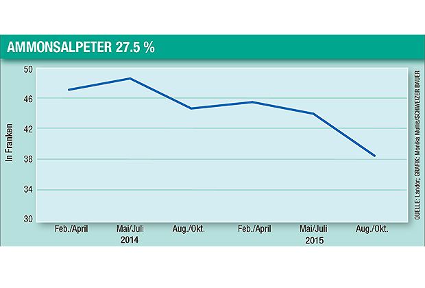 So hat zum Beispiel die Landi ihre Düngerpreise für den Stickstoffvorbezug 2016 bekannt gegeben, und es zeigt sich, dass diese deutlich tiefer sind. «Die Preise für Stickstoffdünger liegen rund 4 bis 5 Franken unter dem Vorjahr und sind somit so tief wie seit Langem nicht mehr. Dank des Währungsvorteils ergeben sich für die Schweizer Landwirte sehr attraktive Preise», erklärt die Landor auf Anfrage und empfiehlt weiter, sich jetzt mit der benötigten Menge für den Frühling einzudecken.