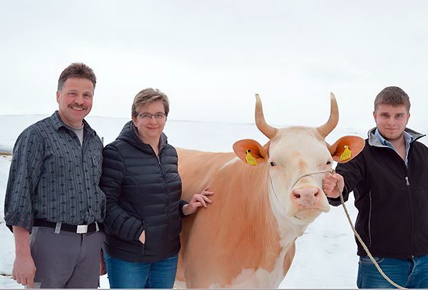 Die Mutter und Grossmutter von Ariel sind beides Code-60er-Kühe, leben beide in Gerbers Stall und haben beide Standardlaktationen von über 9000 Kilogramm Milch geleistet. «Die Urgrossmutter habe ich als kleine Nutzkuh günstig gekauft», erinnert sich Thomas Gerber. Annarös Gerber weiss noch genau: «Sie ist an der Viehschau mit 33 33 gestartet.» Für Reto Gerber ist eines klar: «Man muss nicht teure Kühe kaufen, um erfolgreich sein zu können.» Mit der richtigen Zuchtstrategie und einer grossen Portion Glück sei alles möglich.