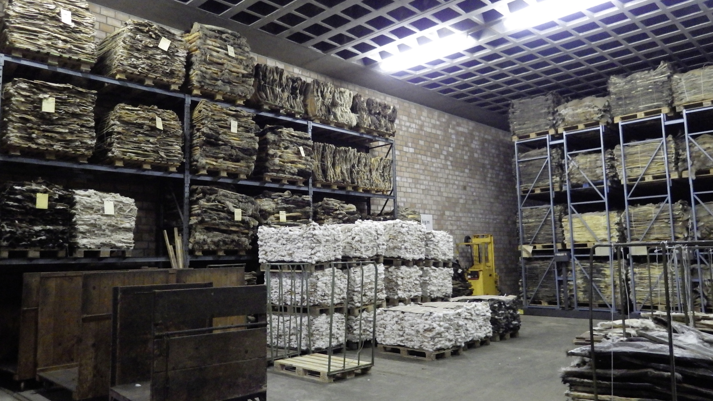 Dann gehts in die Entfleischungsmaschine, bevor die Häute durch Pickeln, Fetten und Dünnschneiden so vorbereitet werden, dass sie die Gerbstoffe gut aufnehmen. Das Gerben verbindet die Hautfasern der Lederschicht zu einem dehnbaren, atmungsaktiven und haltbaren Leder, das nicht mehr faulen kann.