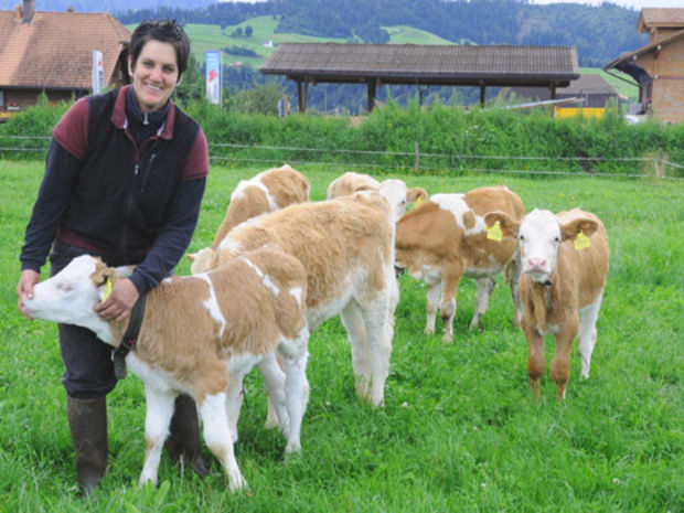 Zum Thema Kühe und Viehzucht hat sie klare Ansichten: «Eine Leistung von 6000 Kilo pro Laktation reicht mir.» Und dies sei mit ihren reinen Simmentaler Kühen zu erreichen. Die Lebensdauer dieser Rasse sei zudem etwas länger, und Fleisch sei halt auch noch dran. Der Betrieb wird konsequent biologisch bewirtschaftet. Die Milch wird zu Bio-Emmentaler verarbeitet – zu einem Milchpreis von gut 80 Rappen, wie sie betont. Doch eine ideologische Biobäuerin sei sie nicht. Man müsse die Strategie auch dem Gebiet anpassen, unterstreicht sie. Und für ihren Betrieb sei die biologische Produktion das Richtige. Und auch politisch entspricht Dumermuth nicht dem eher grünen Bio-Image. Seit Anfang Jahr sitzt sie für die SVP im Gemeinderat. «Ich war schon immer politisch interessiert», meint sie dazu. Und da ihre Eltern noch gut im Schuss seien und ihr Partner Stephan auch mitarbeite, habe sie genügend Zeit, sich in die Dossiers einzuarbeiten.