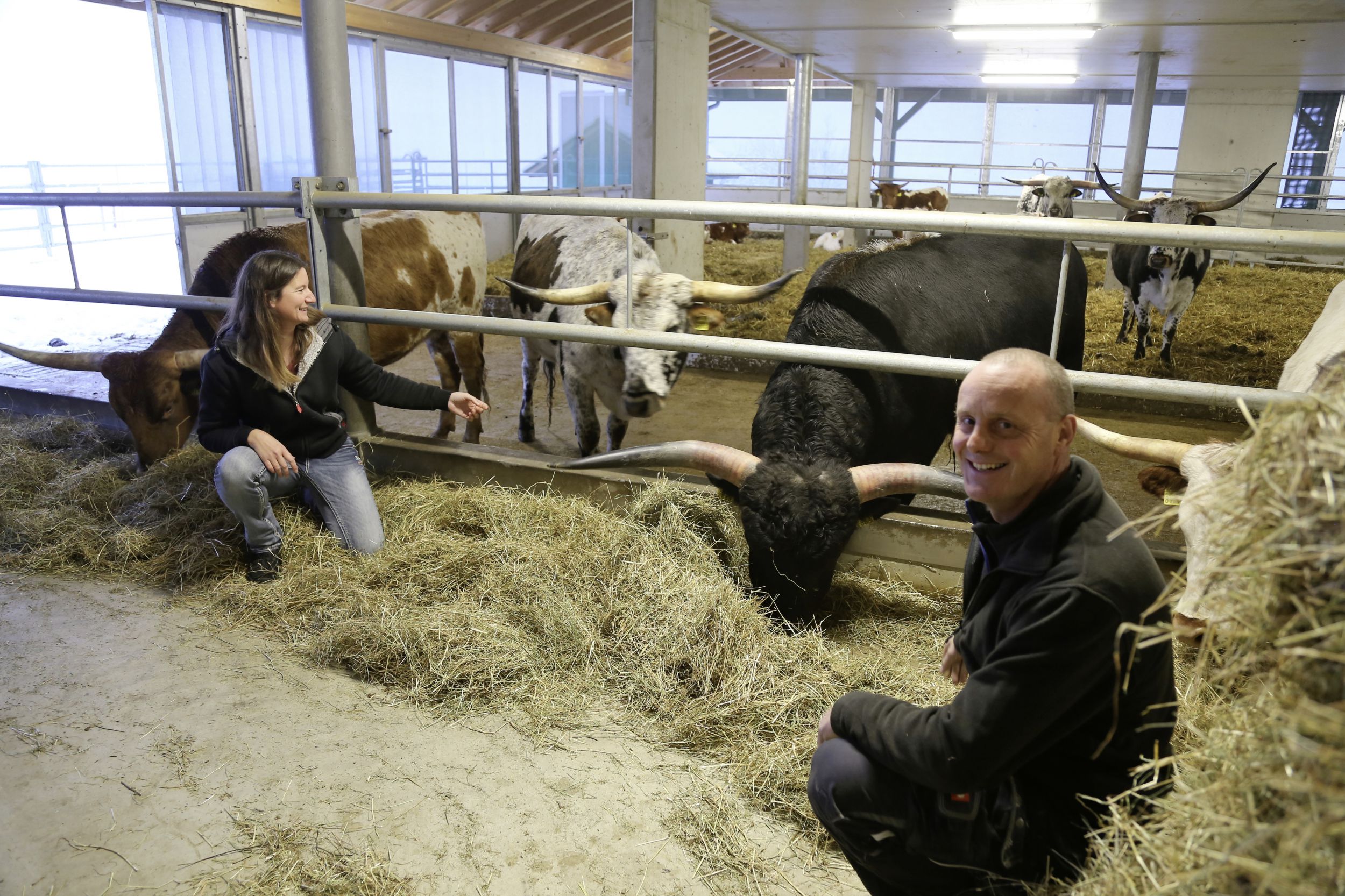 Die Schweiz ist ein traditionelles Rindviehland. Texas Longhorns trifft man dennoch eher selten an – die Rasse ist in der Schweiz erst seit 2004 vertreten. Susanne Sommer und Jürg Keller aus Oberthal gehören seit zwei Jahren zu den wenigen Texas-Longhorn-Züchtern in der Schweiz.