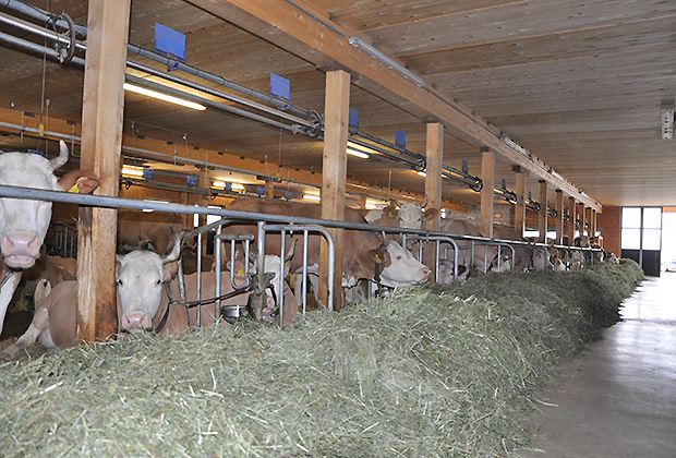 Brigitte und Roland Knutti bewirtschaften in Riggisberg BE 22 ha Land. In der Hügelzone produzieren sie mit 26 Simmentaler Kühen silofreie Milch, welche sie in die lokale Emmentaler-Käserei liefern. In ihrem Stall steht ein Stier, ab und zu lassen sie eine Kuh aber auch künstlich besamen. Peter und Vreni Kropf, die Eltern von Brigitte, helfen in Riggisberg tatkräftig mit. Vor kurzem haben Brigitte und Roland in Oberwil i. S. auch den Betrieb von Rolands Eltern Karl und Elisabeth übernommen. Diese betreuen dort Jungtiere. 6 Kühe und fast alles Jungvieh geht z’Alp. Der Verkauf von Zuchttieren ist ein wichtiger Betriebszweig. rab/sal