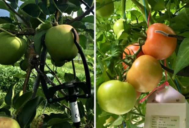 Sensoren messen das Wachstum von Früchten in Echtzeit. Laut Agroscope könnten die Daten zur Optimierung von Obstanlagen und Gewächshäusern eingesetzt werden.