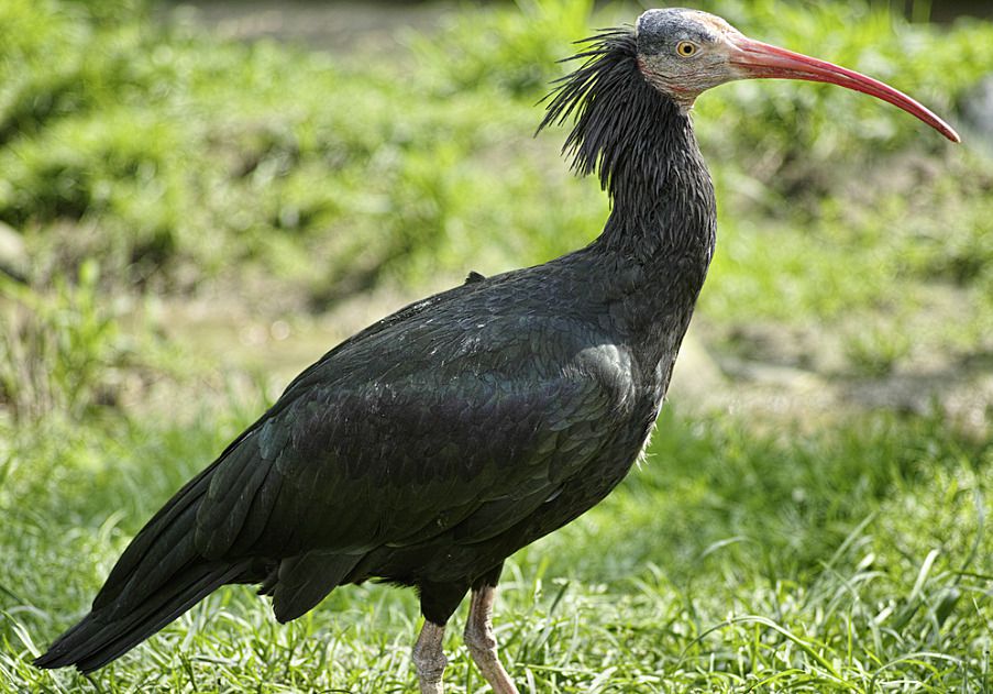 Der Waldrapp ist in der Schweiz und im Rest von Mitteleuropa ausgestorben, weil er stark bejagt wurde. Sein Fleisch galt als Delikatesse. Der markante Vogel wird 60 Zentimeter gross und hat eine Spannweite von 125 Zentimetern.