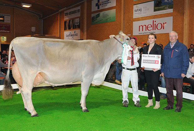 Bei den älteren Schöneuterkonkurrenzen schwang mit Fortuna von Jules Dietsche, Kriessern, eine Glenn-Tochter obenaus. Sie hatte schon in der Abteilung mit Mansers Julen Goldi von Bruno Manser, Muolen, eine sehr harte Konkurrentin zu schlagen. Goldi wurde im Schöneuterwettbewerb ältere Dritte. Vor ihr klassierte sich mit Wurl-Tochter Julia von Andreas Räss, Andwil, sogar eine Kuh mit über 50’000 Kilogramm Lebensleistung. Alle drei Kühe waren dann auch in der Wahl zur Champion unter den letzten sechs Kühen dabei. Richter Wendelin Casutt selektionierte dann auch noch die beiden Kühe aus der Schöneuterwahl jung, Jasmin und Jamaica. Mit dabei war auch die sehr typstarke Näf’s Glenn Lara von Walter Rhyner, Hoffeld. Lara konnte schliesslich wegen etwas mehr Feinheit und leichtem Vorteil im Becken den Titel knapp vor Julen Goldi und Glenn Fortuna gewinnen. Damit konnten die beiden Spitzenkühe aus der Abteilung 9 bis auf das Podest laufen. Den Titel Miss Genetik holte mit H.U. Huser’s Jolden Patrizia von Hansueli Huser, Neu St. Johann. Die nationale Schaugrösse Patrizia bewegte sich wegen Klauenbeinproblemen nicht ganz gut. Sonst wäre sie wohl auch im Final zur Champion weit nach vorne gestossen. Huser gewann dann mit der Patrizia-Tochter Prinzessin den Fitnesstar.