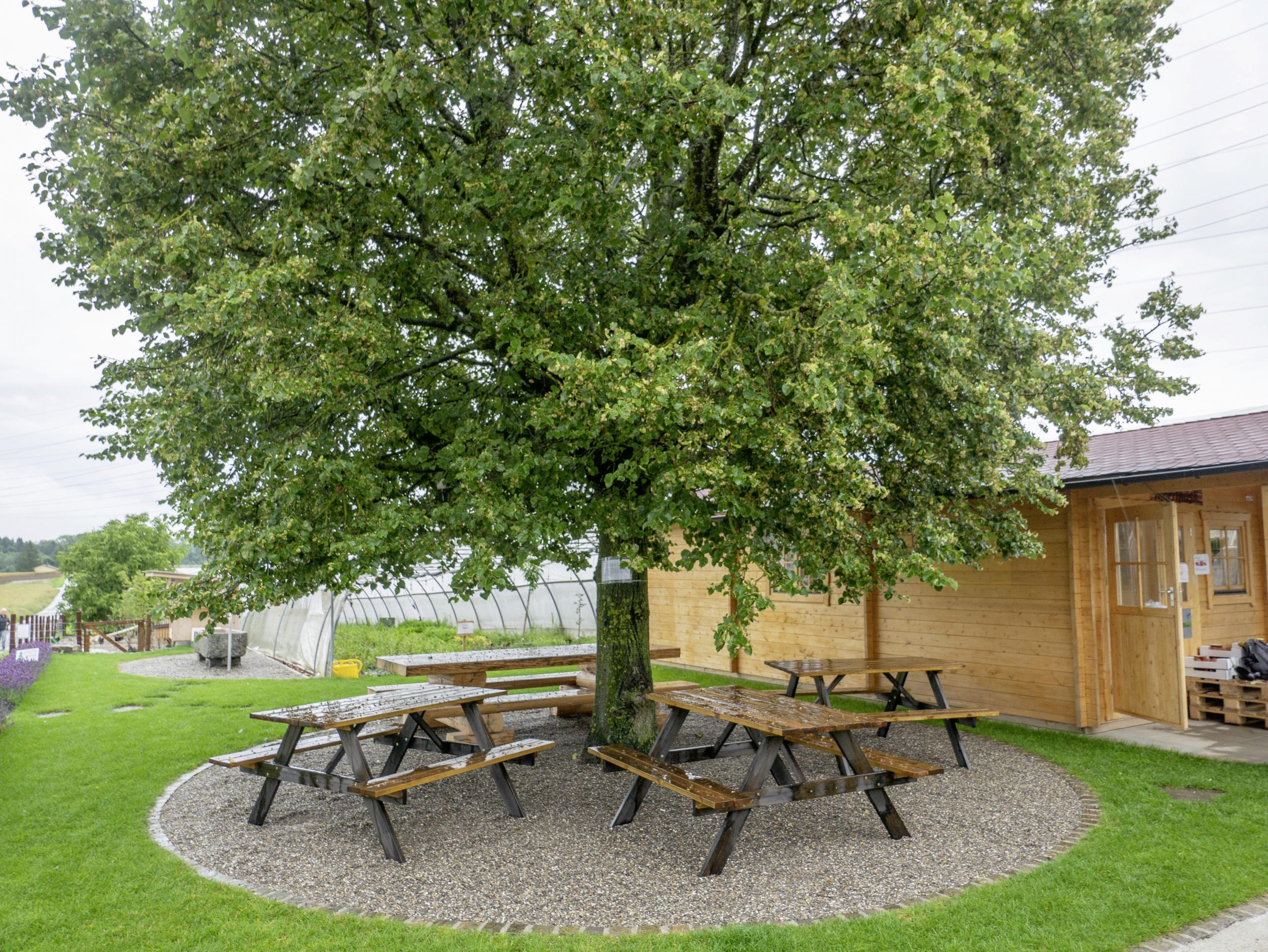 In einem Moment der Achtsamkeit kam Gemüsegärtner Thomas Hurni im freiburgischen Kerzers zur Erkenntnis, dass der wunderschöne Baum mehr verdient hätte. Schliesslich hatte er ihn damals als Kind gemeinsam mit seinen Eltern gepflanzt. Als erste Aktion stellte er deshalb im Frühling des letzten Jahres eine Bank zum Verweilen für jedermann darunter. Das kam gut an.