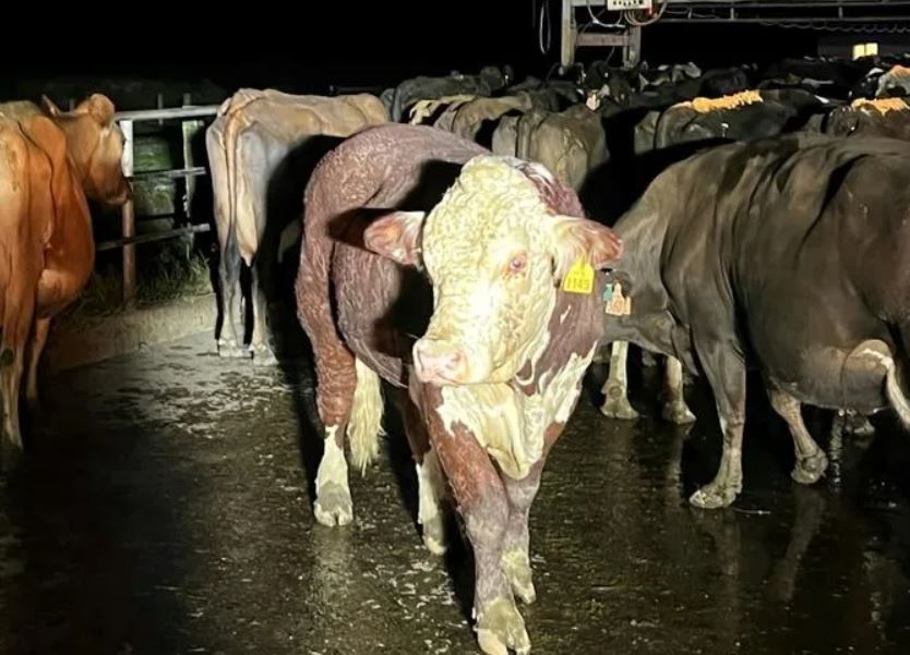 Der Stier von Landwirt Tony Peacock war am 10. Februar auf der Weide, als in Shenandoah-Region auf Neuseelands Südinsel starke Niederschläge einsetzten. Die Regenmengen waren sehr gross. Nicht weniger als 160 mm habe er gemessen, sagte er zur Zeitung «Guardian».