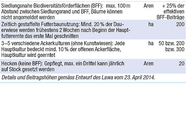 Sind diese drei plus weitere drei Massnahmen erfüllt, wird ein maximaler jährlicher Grundbetrag von 350 Fr. pro Betrieb entrichtet. Dazu kommen die Einzelbeiträge.