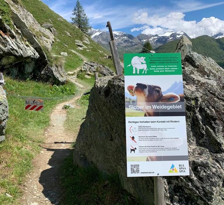 Eine Sperrung/Umleitung und die zugehörige offizielle Signalisation des betroffenen Wegabschnitts erfolgt ausschliesslich durch die zuständigen Wanderwegverantwortlichen. Ist jedoch eine Herde nach einem Zwischenfall plötzlich stark beunruhigt, kann dies auch Drittpersonen gefährden.