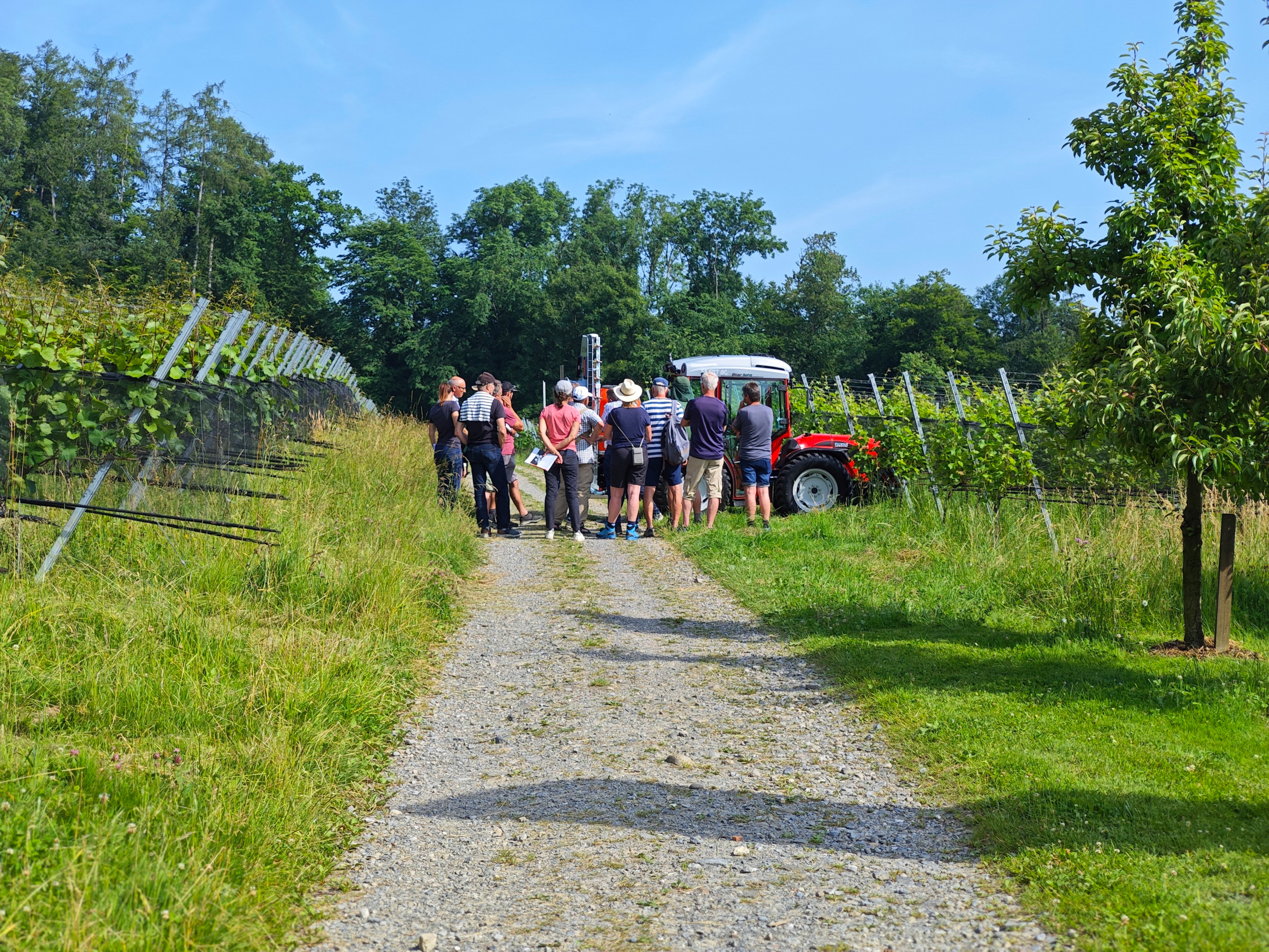 Auch wurden die Anforderungen an die Lagerung von Pflanzenschutzmitteln sowie an gewässerschutzkonforme Befüll- und Waschplätze thematisiert. Ein weiteres zentrales Thema war die Applikationstechnik. Dafür wurden die optimale Geräteeinstellung und die gezielte Einbindung verschiedener Technologien erläutert und direkt im Rebberg bei der Anwendung mit den Teilnehmenden verglichen.