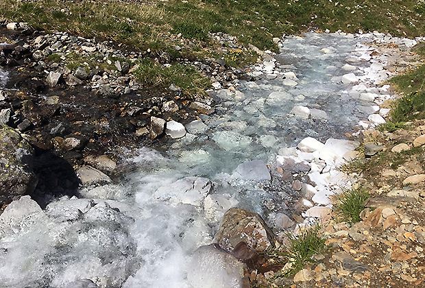 Ein Bergbach in einem abgelegenen Seitental im Engadin gab jahrzehntelang Rätsel auf: Auf mehreren Kilometern ist das Bachbett schneeweiss gefärbt. Forschende der Uni Bern haben nun mit Kollegen das Rätsel um das seltene Phänomen gelöst.