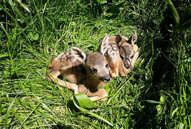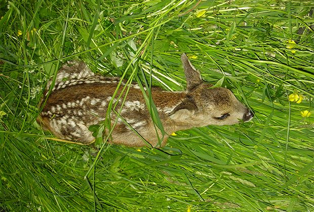Rehkitze fühlen sich in hohem Gras geschützt. Meist verstecken sie sich deshalb in den ersten zwei bis drei Wochen ihres Lebens. Werden sie entdeckt, verfallen sie in eine Starre. Erst ab der dritten Lebenswoche versuchen sie sich durch Flucht in Sicherheit zu bringen. Weil die kleinen Bambis durch ihr Fleckenfell gut getarnt sind, ist es schwierig, sie zu sehen und zu retten. Gelingt dies, ist ein herziger Anblick garantiert.