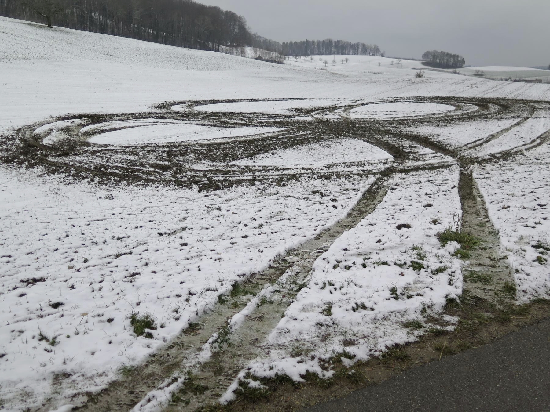 Das Feld ist tief zerfurcht durch Reifenspuren. Die Unbekannten haben eine grosse «Acht» hinterlassen. Der betroffene Landwirt Stefan Kunz aus Zeglingen ist entsprechend verärgert.