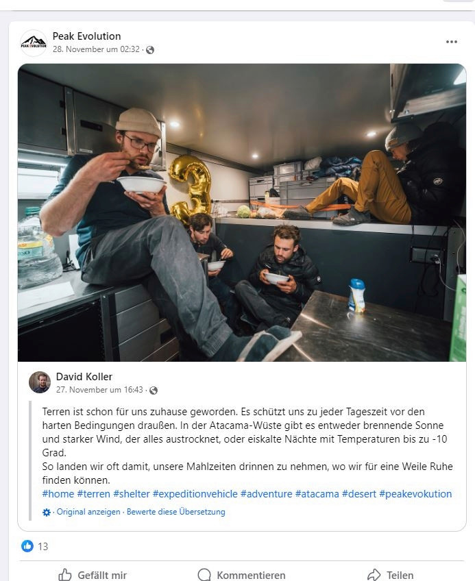 Nun habe sich Patrik Koller aus Chile gemeldet, schreibt die «Berner Zeitung»: «6500 Meter sind genug. Wir wollen den Terren sicher nach Hause bringen.» Terren heisst ihr Fahrzeug, rätoromanisch für Erde.