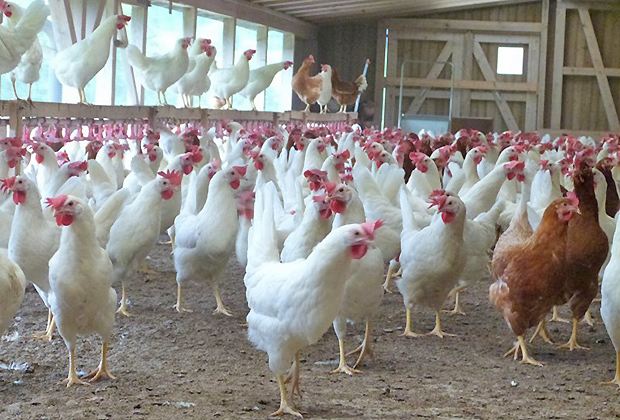 Die Schweiz hat mehr Hühner als Einwohner. Von den 10 Mio. Geflügeltieren sind 3,5 Mio als Zucht- und Legehühner registriert. Ein Legehuhn frisst im Tag etwa 120 Gramm Futter. Dieses besteht zur Hauptsache aus Mais, Weizen und Soja. Für die Bildung der Eierschale werden dem Futter Mineralsalze wie zum Beispiel Kalzium beigegeben.